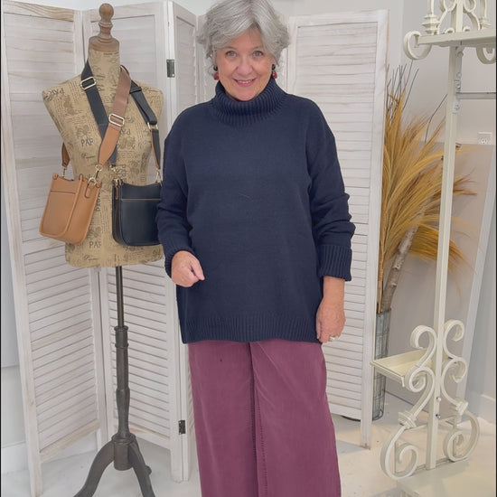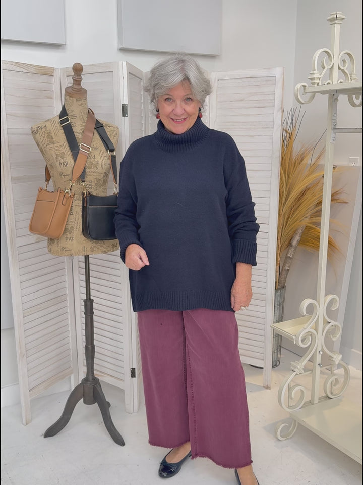 Our Dog Walker Chunky Cowl Sweater is a must have for winter! It feels like wearing a beautiful soft blanket. It has a ribbed wide neck and cuffs that can be folded back or worn straight and scrunched. Slightly longer back length for ergonomic fit. This is a must have for the cooler months. Washes and wears well and despite its size, is a lighter weight sweater that won’t drag you down. Beautiful fashion shades or neutrals to compliment your wardrobe.