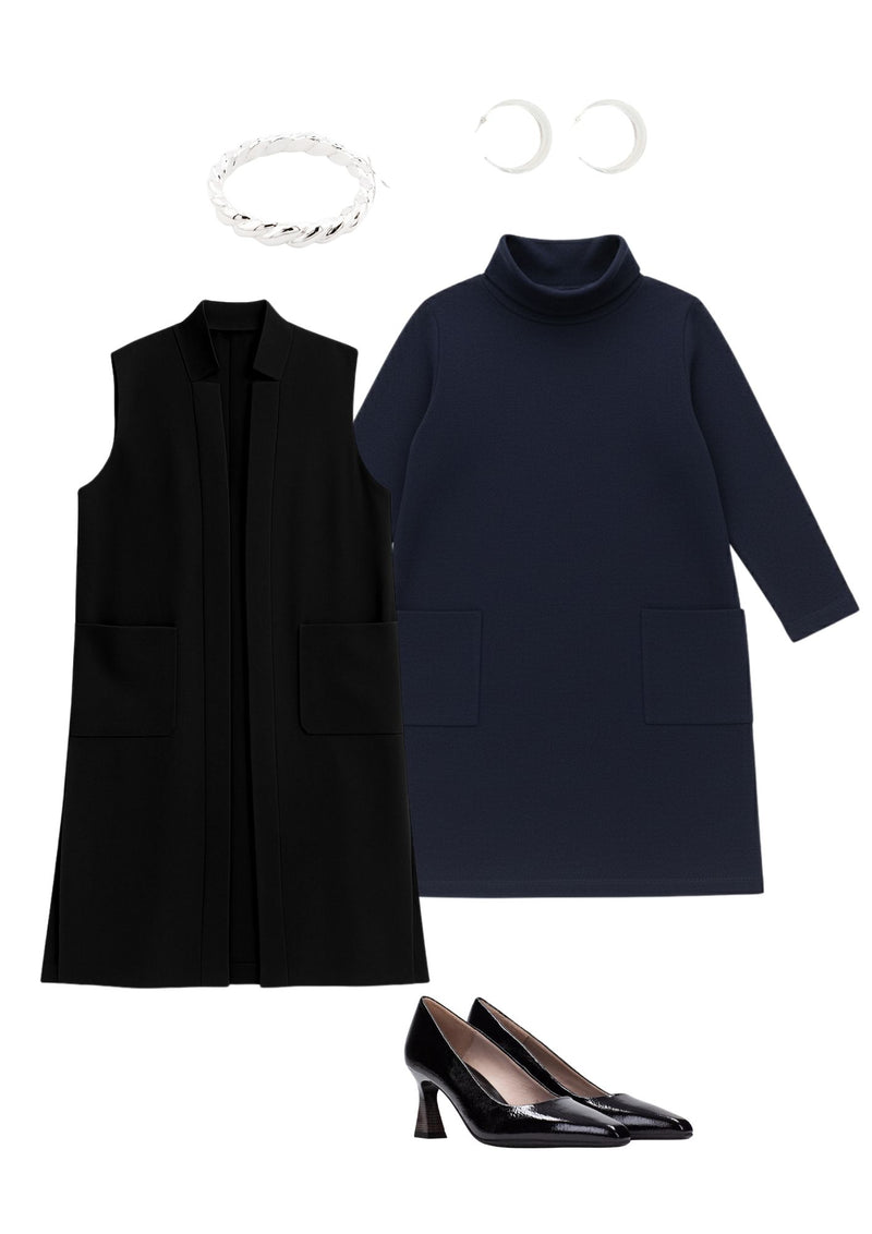 The Ponte Lisa Vest is your go-to layering piece for effortless style and structure. Designed with an open front, long length, and side slits for ease of movement, it adds polish to any outfit. The trim along the neckline and down the front gives it a clean, modern edge, while the smooth scuba fabric offers comfort and versatility—perfect over your favorite tops or tunics.