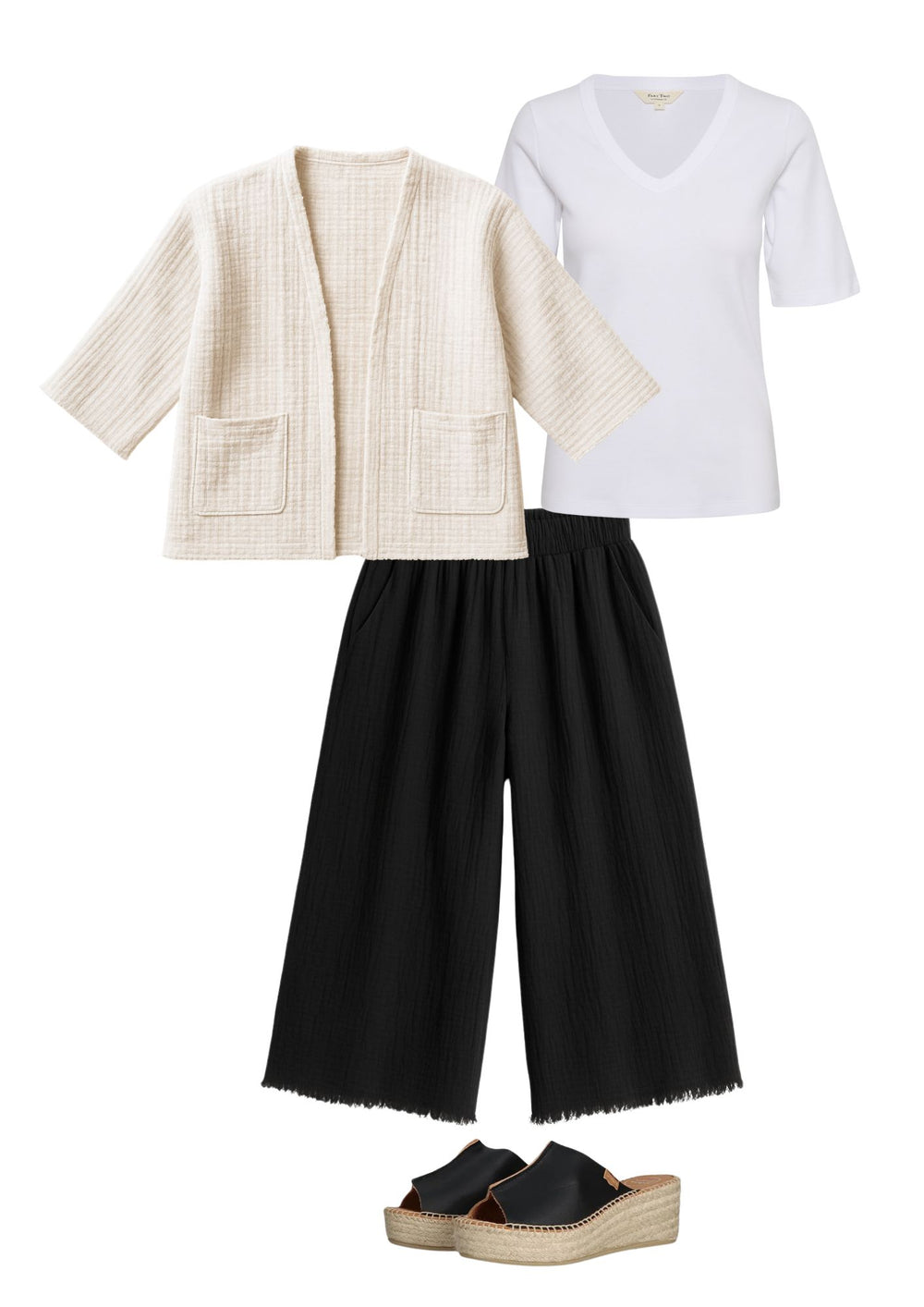 A wide-leg, luxurious, yet comfortable pant, designed sustainably for travel and to pair with everyday, every-situation outfits.