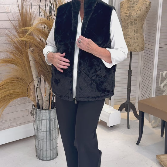 Two looks, one vest. This reversible style features a quilted side with a bold floral print and a plush faux-fur side for cozy sophistication. Lightweight and versatile, it’s the ideal layering piece to elevate your everyday outfits.