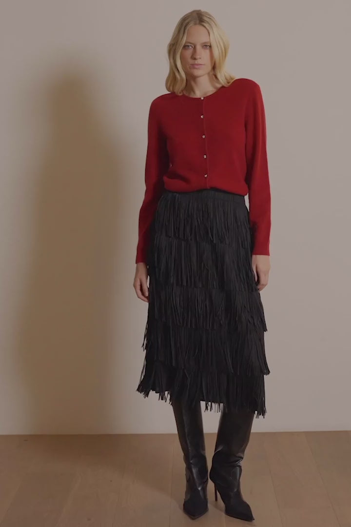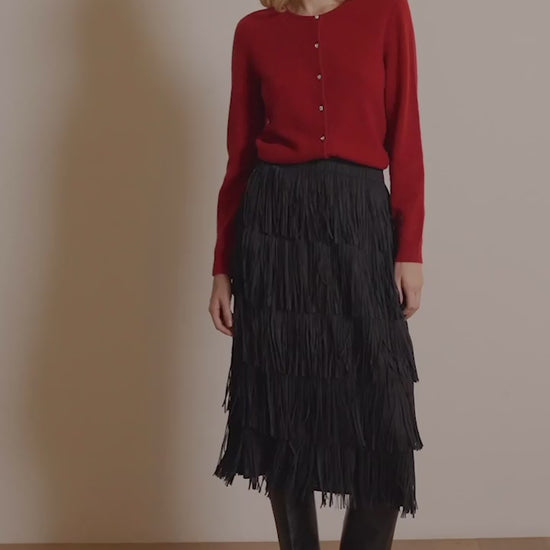 This button-front cashmere cardigan, accented with sparkling rhinestone buttons, is the perfect layering piece for cooler days when you want to look polished. Framed by a crew neck and long cuffed sleeves, it exudes soft refinement and effortless elegance. (Copyright Joseph Ribkoff 2025)