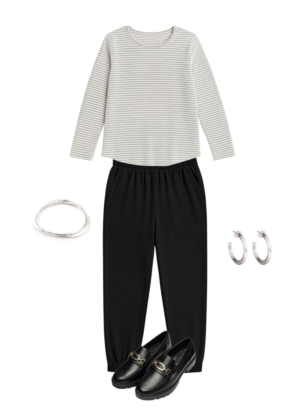 Your go-to wardrobe basic for all-day comfort. Made from soft, luxurious fabric, this tee features timeless stripes and flattering full-length sleeves that add effortless style to any look. Designed to keep you feeling relaxed and chic from morning to night, you won’t want to take it off!