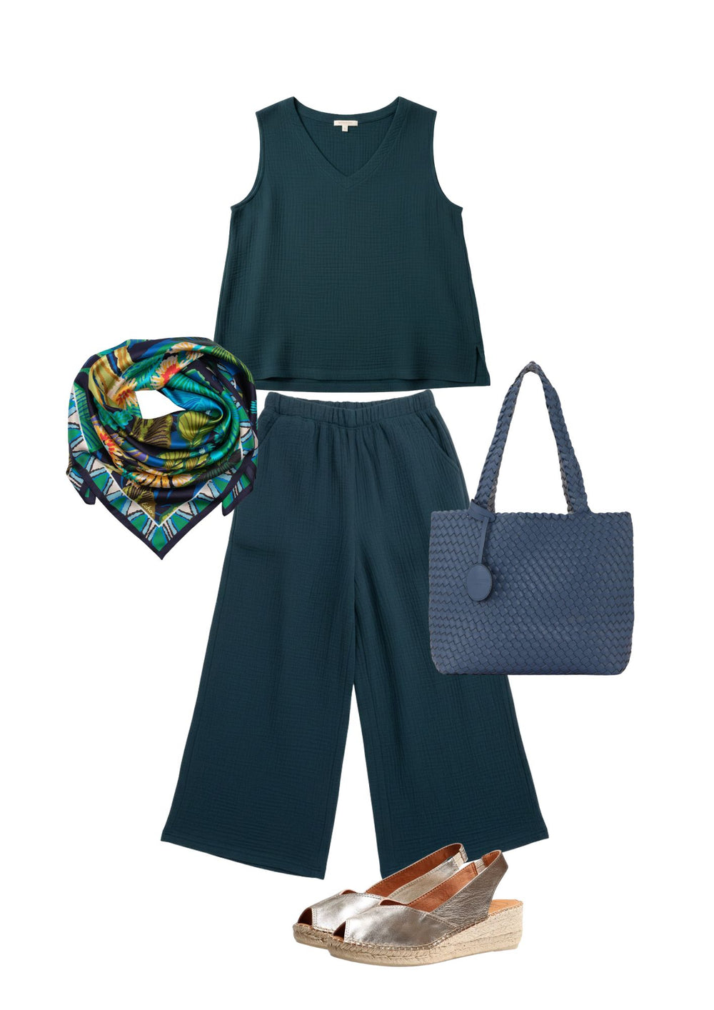 Shepherd's Gauze V Neck Cami in 100% organic cotton offers effortless elegance with a relaxed fit and breathable fabric. The soft, lightweight gauze drapes beautifully for layering or solo wear. Designed and made in Canada, this piece pairs perfectly with the matching Gauze pants for a coordinated set.