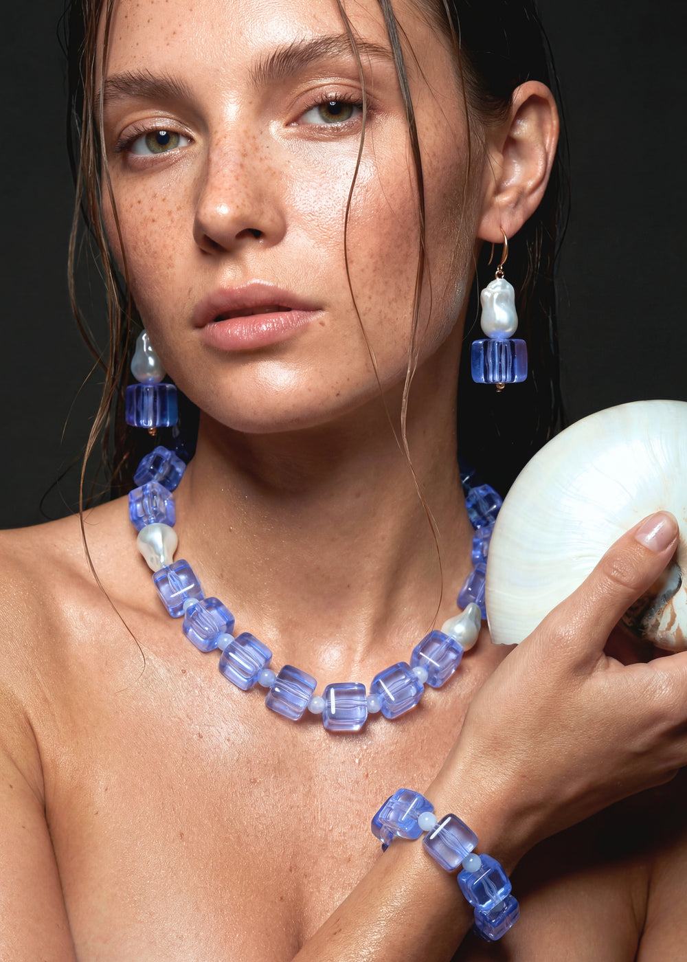 Merx - Baroque Pearl & Cube Earrings