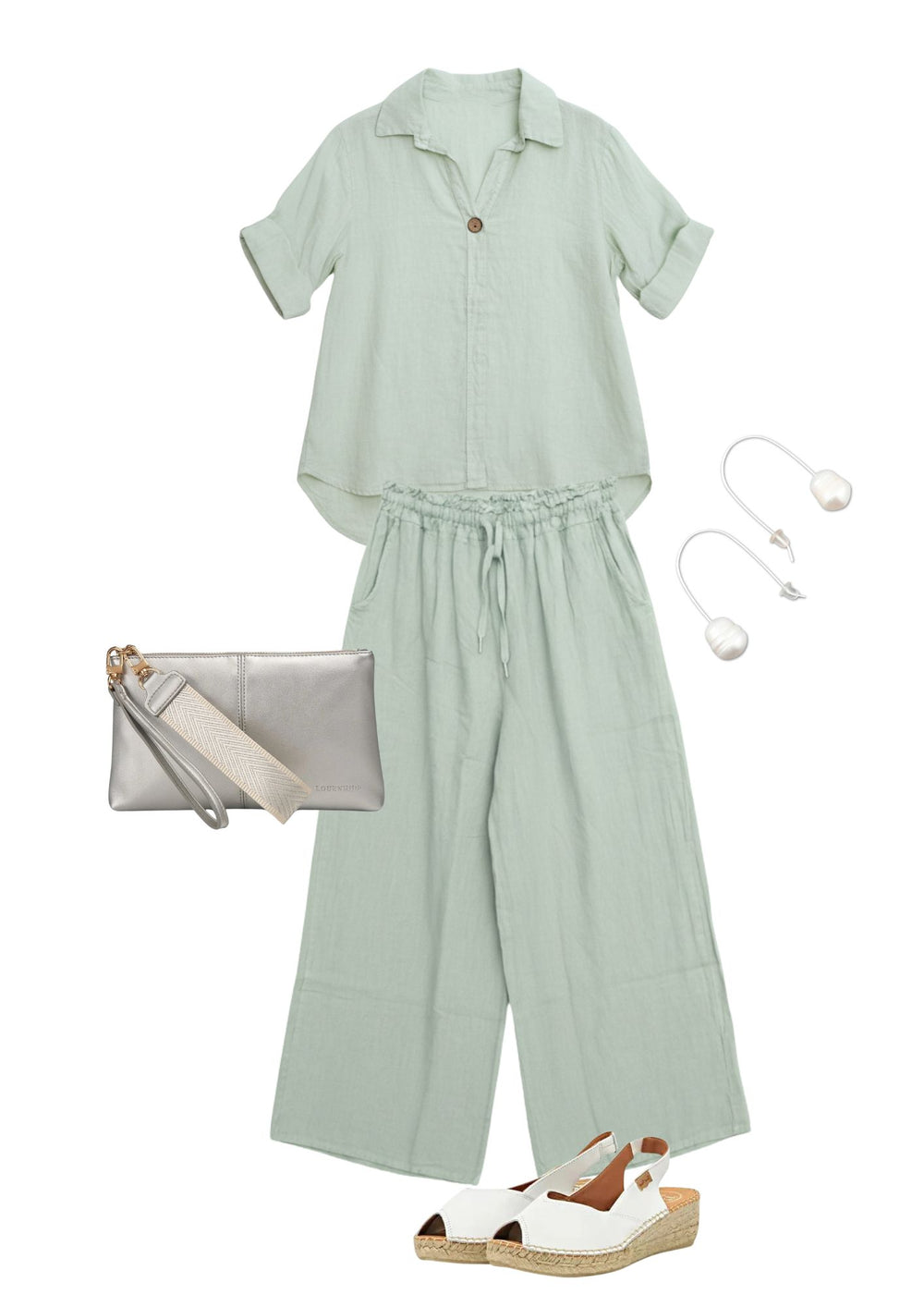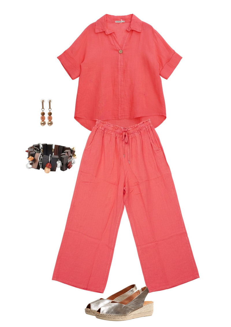 Classic and understated, this Button Top features a crisp collar, 3/4 sleeves, and a single button closure for a clean, elegant look. Its minimalist design makes it a versatile wardrobe staple, perfect for layering or wearing on its own for both casual and polished outfits. (Copyright Orange 2025)
