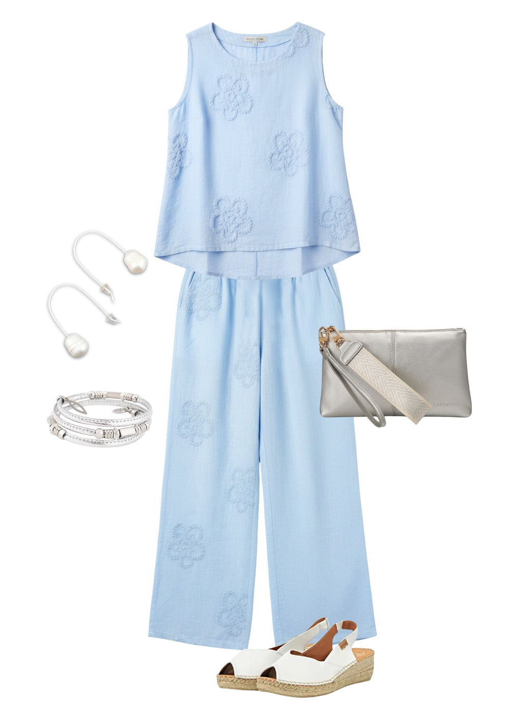 Fresh and feminine, Lila’s Bloom Stitch Tank features a sleeveless design with a flattering round neckline, adorned with multiple intricate floral embroideries. Light and airy, this tank brings a touch of garden-inspired charm to your casual outfits or layered looks. (Copyright Orange 2026)