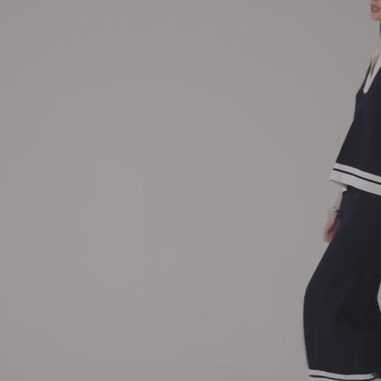 These sweater knit culotte pants, crafted from dry viscose and nylon yarn in full needle stitch, feature a bold border stripe for added flair. With an inserted elastic waistband, they offer both comfort and style, making them an effortless addition to any wardrobe. (Copyright Joseph Ribkoff 2025)