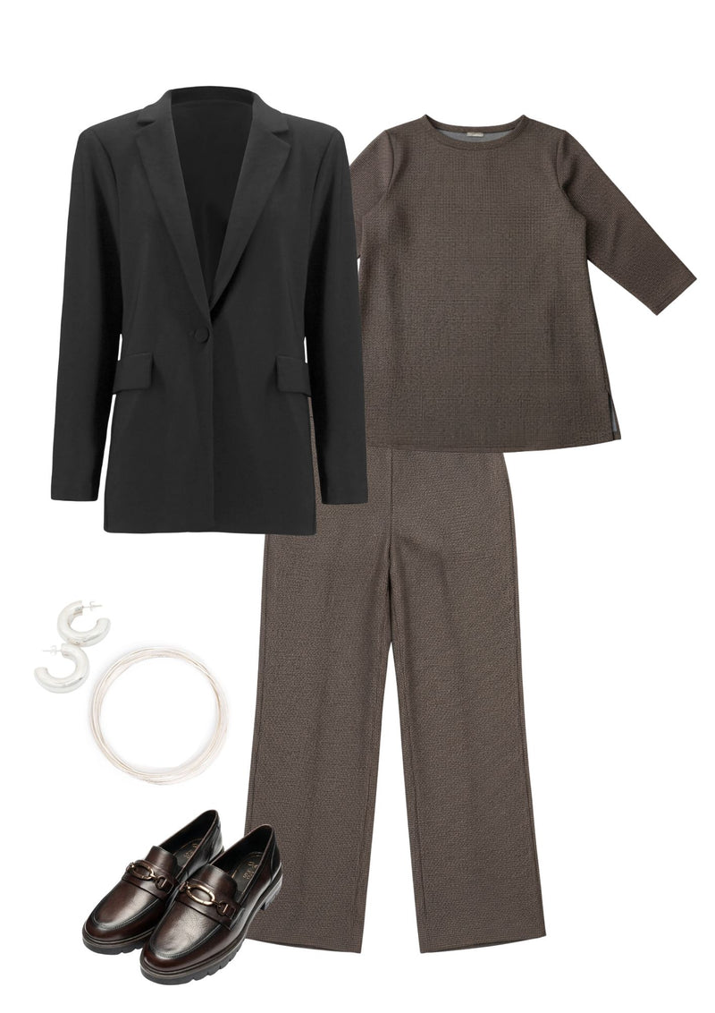 Meet the Shepherd’s Ponte Transit Tunic II in Houndstooth — a versatile essential that combines all-day comfort with polished style. Crafted from lightweight yet durable ponte fabric, it drapes beautifully and flatters your shape while keeping you comfortable and confident. The timeless houndstooth pattern adds subtle sophistication, making this tunic ideal for layering or wearing on its own, whether at work, running errands, or enjoying a relaxed weekend.