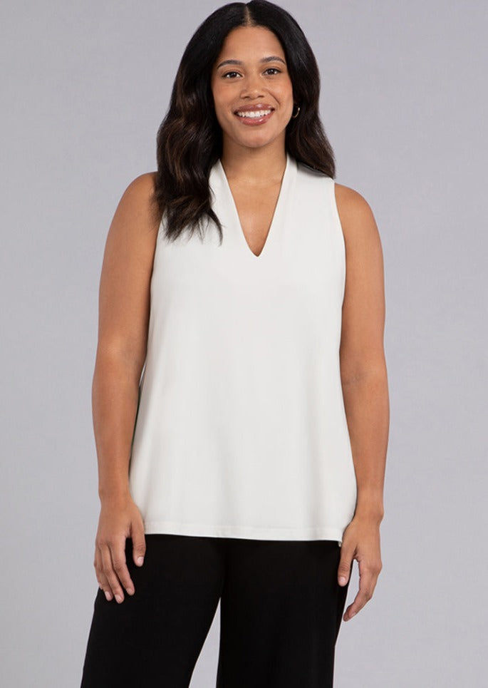 An elevated basic that will take you from day to night. The Deep V Trapeze Tank is a gorgeous fit-and-flare, A-line shape with a chic deep V neckline. This sleeveless tank has a double layer front. Versatile enough to look good paired back with just about anything. A flattering fit-and-flared style with an A-line cut that’s ideal for all body shapes. The length of this tank is slightly shorter compared to the best-selling, Go To Tank Relax. (COPYRIGHT SYMPLI 2022)