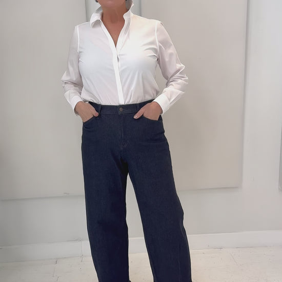 Malia is our take on the barrel trend. With its soft barrel shape, minimalist slit pockets, and sleek tonal stitching, this deep indigo pair is both fashion-forward and wearable. Designed to sit comfortably below the waist and hit at the ankle, it's made for everyday versatility.(Copyright Yoga Jeans 2025)
