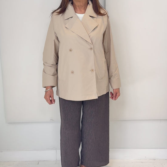 The Eileen Fisher Short Trench Coat combines classic style with a trendy, modern cut. Perfect for adding a chic layer to any outfit, it offers both comfort and sophistication for everyday wear.