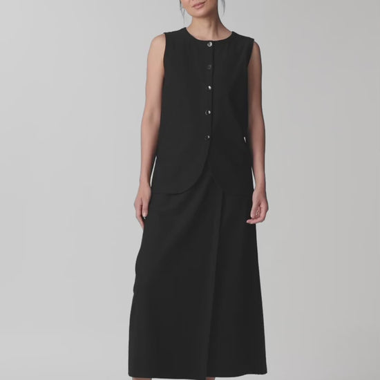 A sleek skirt with an overlapping panel that wraps in the front. Easy to wear, easy to care for in our washable, packable stretch crepe. (Copyright Eileen Fisher 2025)