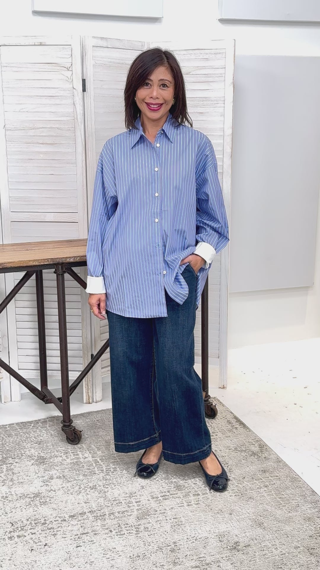 The Yest Benedikte Blouses feature a button-front design, contrasting cuffs, and a stylish hi-low hem for a modern, polished look. Perfect for adding subtle detail to your wardrobe.