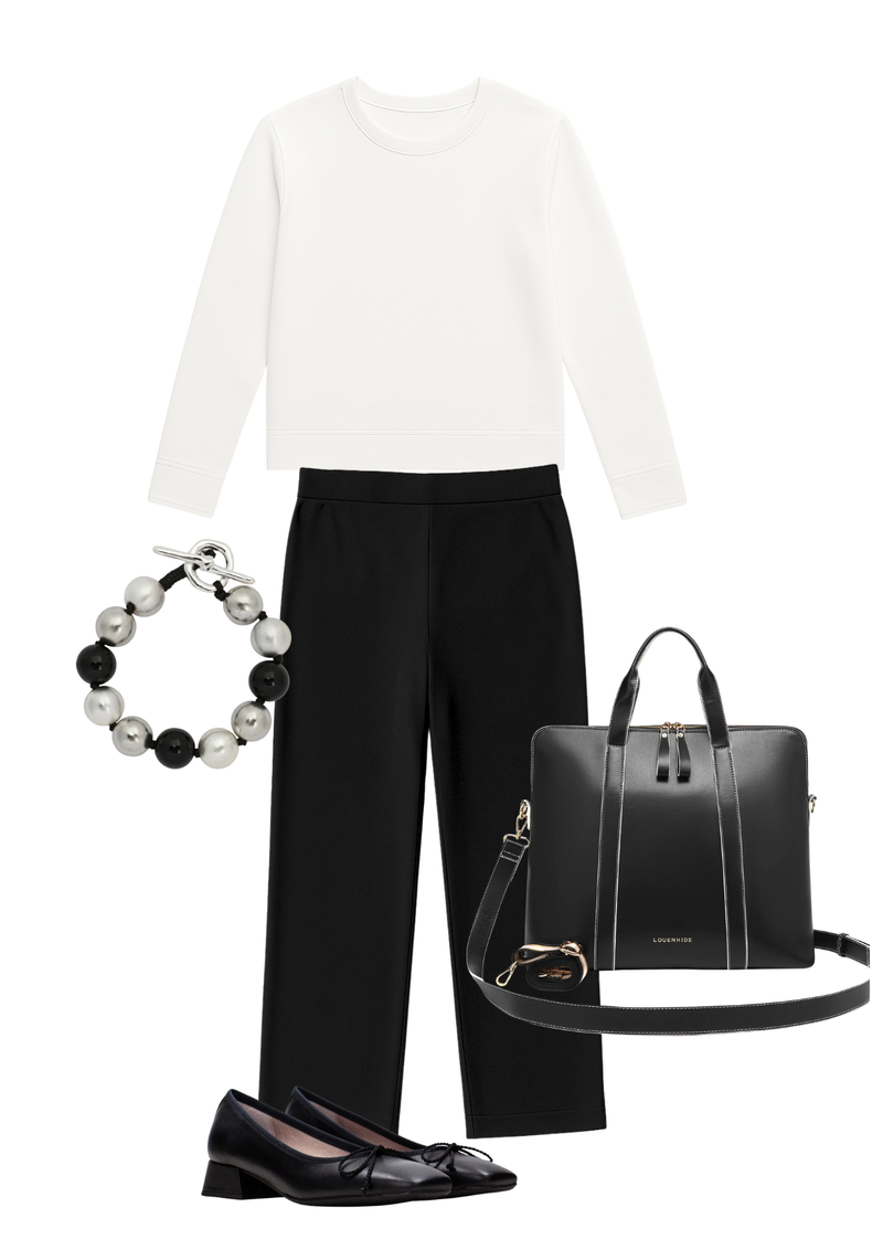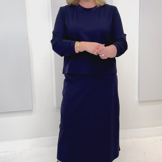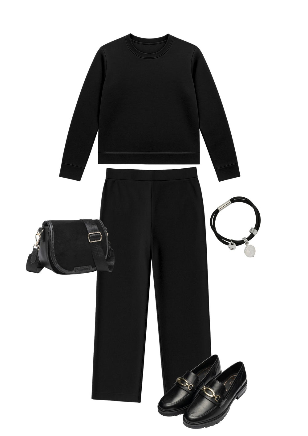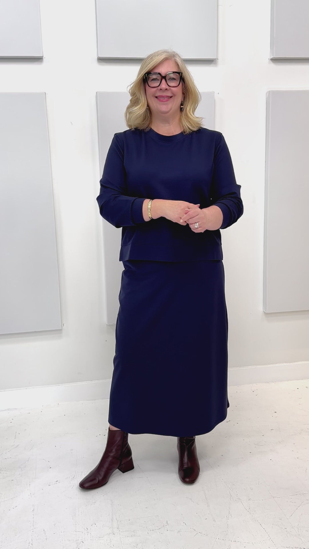 Meet the crewneck that redefines easy elegance. Crafted from a soft yet structured ponte knit, it drapes beautifully while holding its shape wear after wear. Thoughtful details like cuffed sleeves, a relaxed fit, and a clean straight hem create a polished silhouette that moves seamlessly from work to weekend — and everywhere in between. Effortless comfort, timeless style, endlessly versatile.