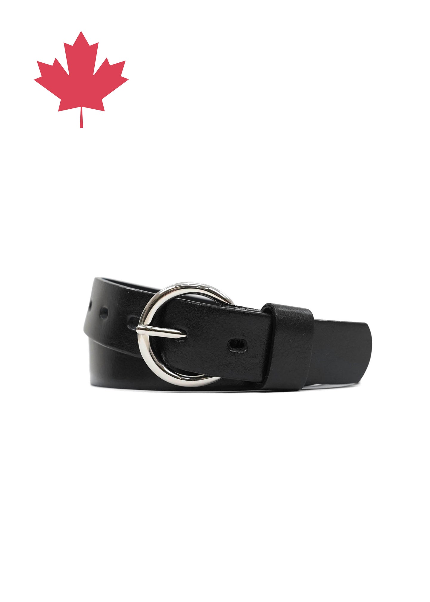 Complétez votre tenue avec élégance grâce à la ceinture en cuir à boucle ronde. Cet accessoire raffiné et résistant est confectionné en cuir italien véritable et disponible en plusieurs tailles pour un ajustement parfait.