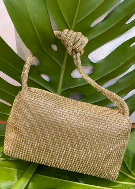 Pochette LCD noire et dorée à perles