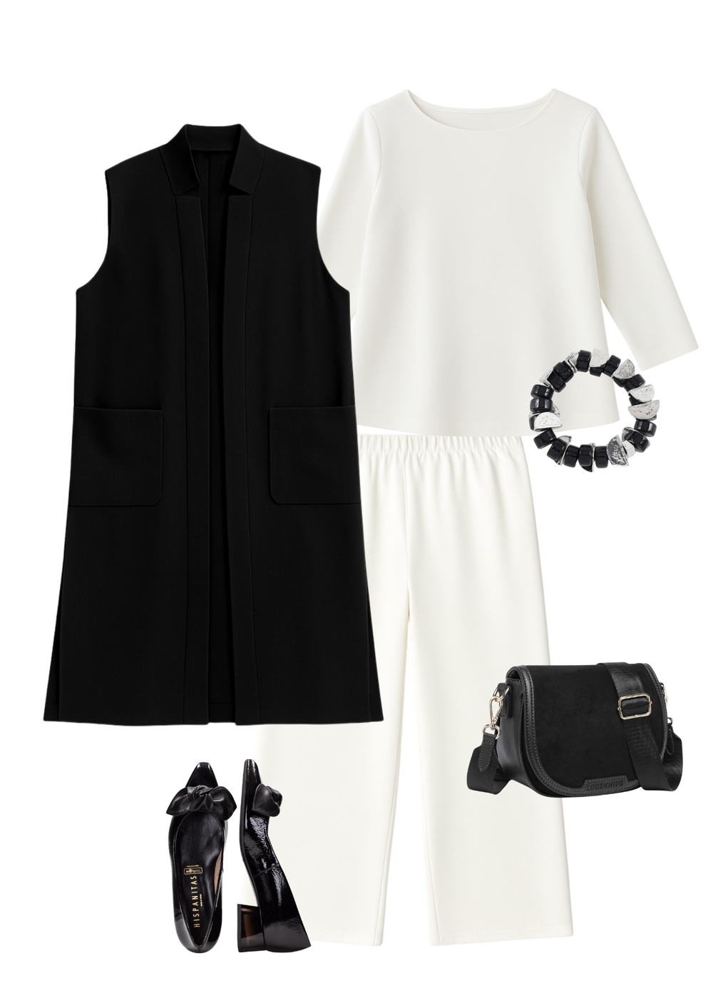 The Scuba Lisa Vest is your go-to layering piece for effortless style and structure. Designed with an open front, long length, and side slits for ease of movement, it adds polish to any outfit. The doubled trim along the neckline and down the front gives it a clean, modern edge, while the smooth scuba fabric offers comfort and versatility—perfect over your favorite tops or tunics.
