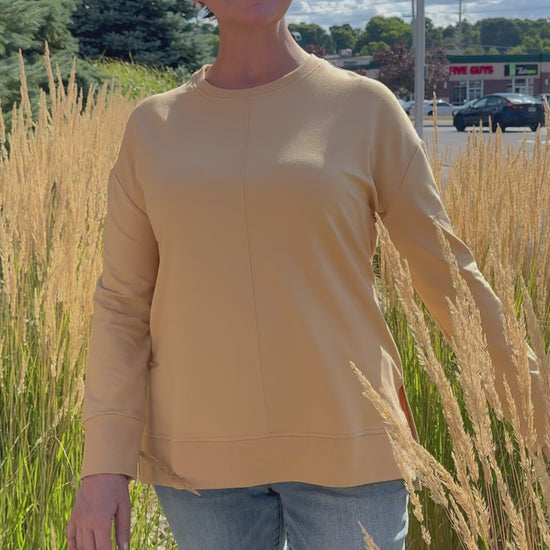 Experience unmatched comfort with the Blondie - Wheat Sweatshirt, a Canadian-made oversized top crafted from soft, breathable bamboo fabric. Designed with a relaxed fit and a stylish front seam, this sweatshirt offers cozy warmth while allowing natural airflow. Perfect for lounging or casual outings, it combines sustainable materials with thoughtful design to keep you comfortable and effortlessly chic. Embrace everyday luxury with a piece that cares for both you and the planet.