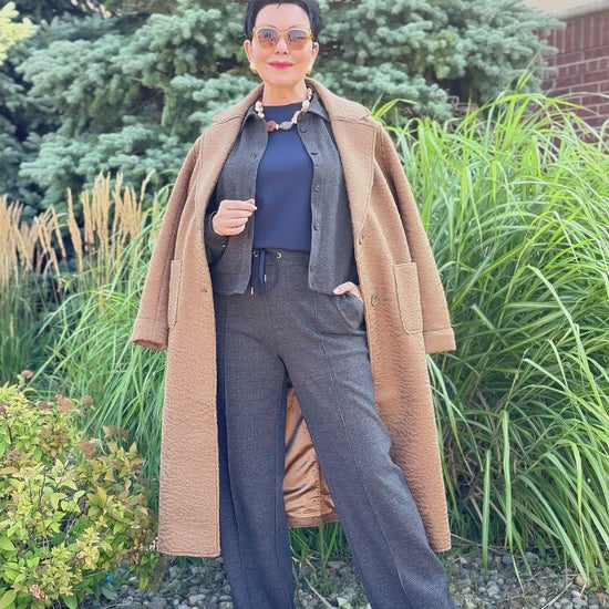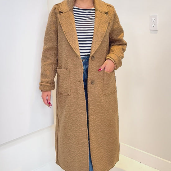 The Yest Zorina Long Coat offers a sleek button-front closure and a flattering long cut, combining style and warmth for everyday wear. Perfect for layering during cooler seasons.