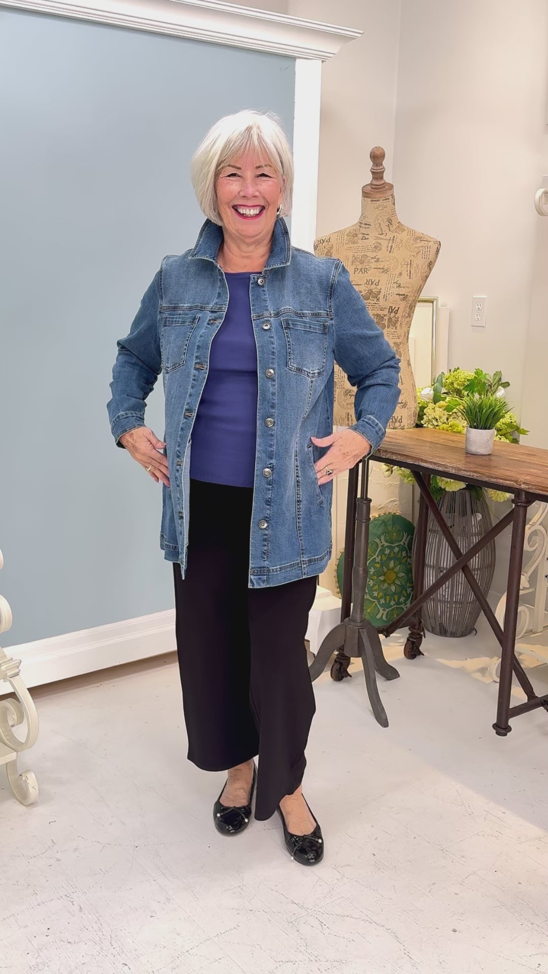 - Flat shoulder to hem measurement: approx. 30"