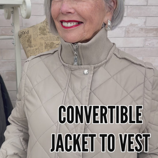 Nikki Jones - Vegan Leather Quilted Convertible Jacket to Vest - SALE