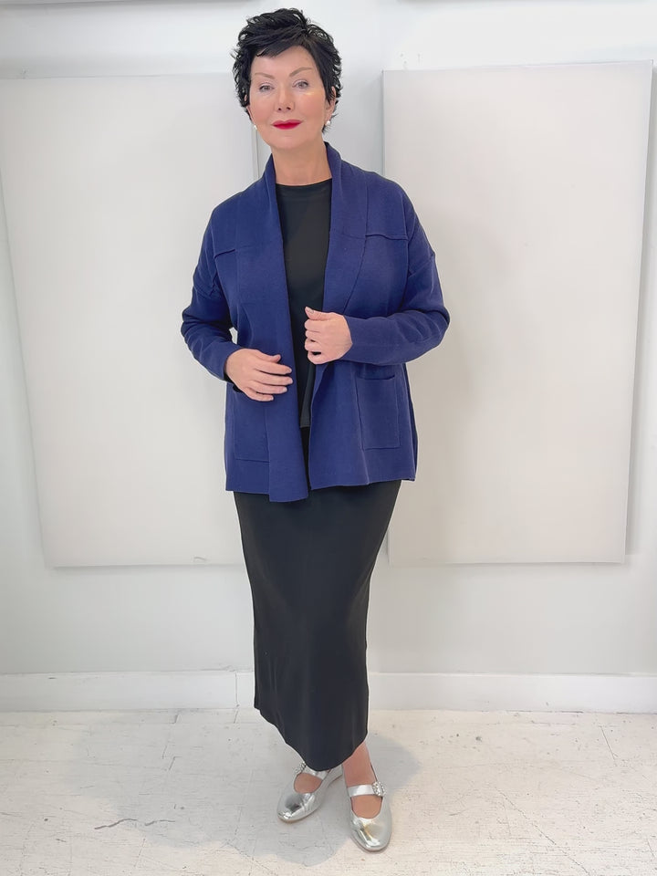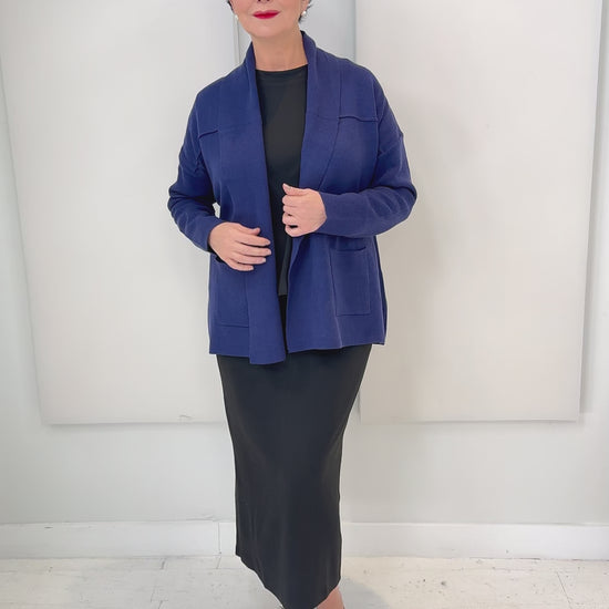 The Raffinalla mid-length shawl-collar cardigan features an open front for endless styling possibilities. This versatile piece is a perfect addition to any chic closet.