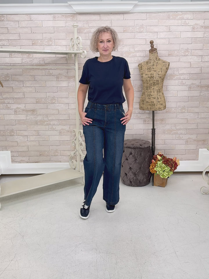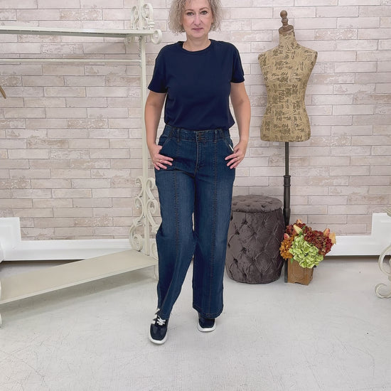 The Emma Wide Leg is fitted from the skyrise waist through the hips with a relaxed, wide opening through the legs. Made with Contour Shape Technology for a tailor-made, flawless fit and thoughtful design details, including a double button and center front seams. (Copyright Wit & Wisdom 2025)