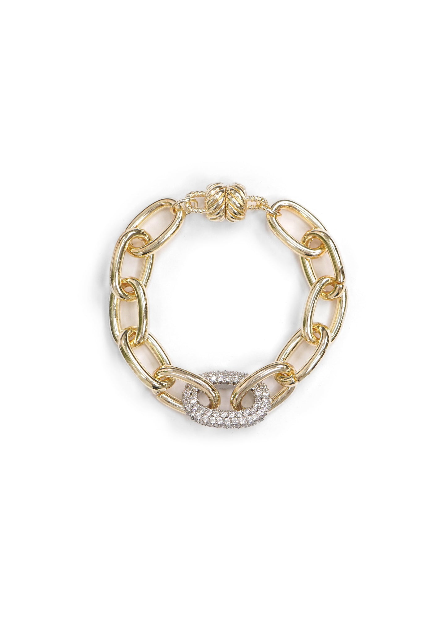 Complete your outfit with our CCB- Chain Crystal Link Bracelet. This chic bracelet features a unique crystal bling link and is secured with a convenient magnetic clasp. Elevate your style with a touch of sparkle and functionality.