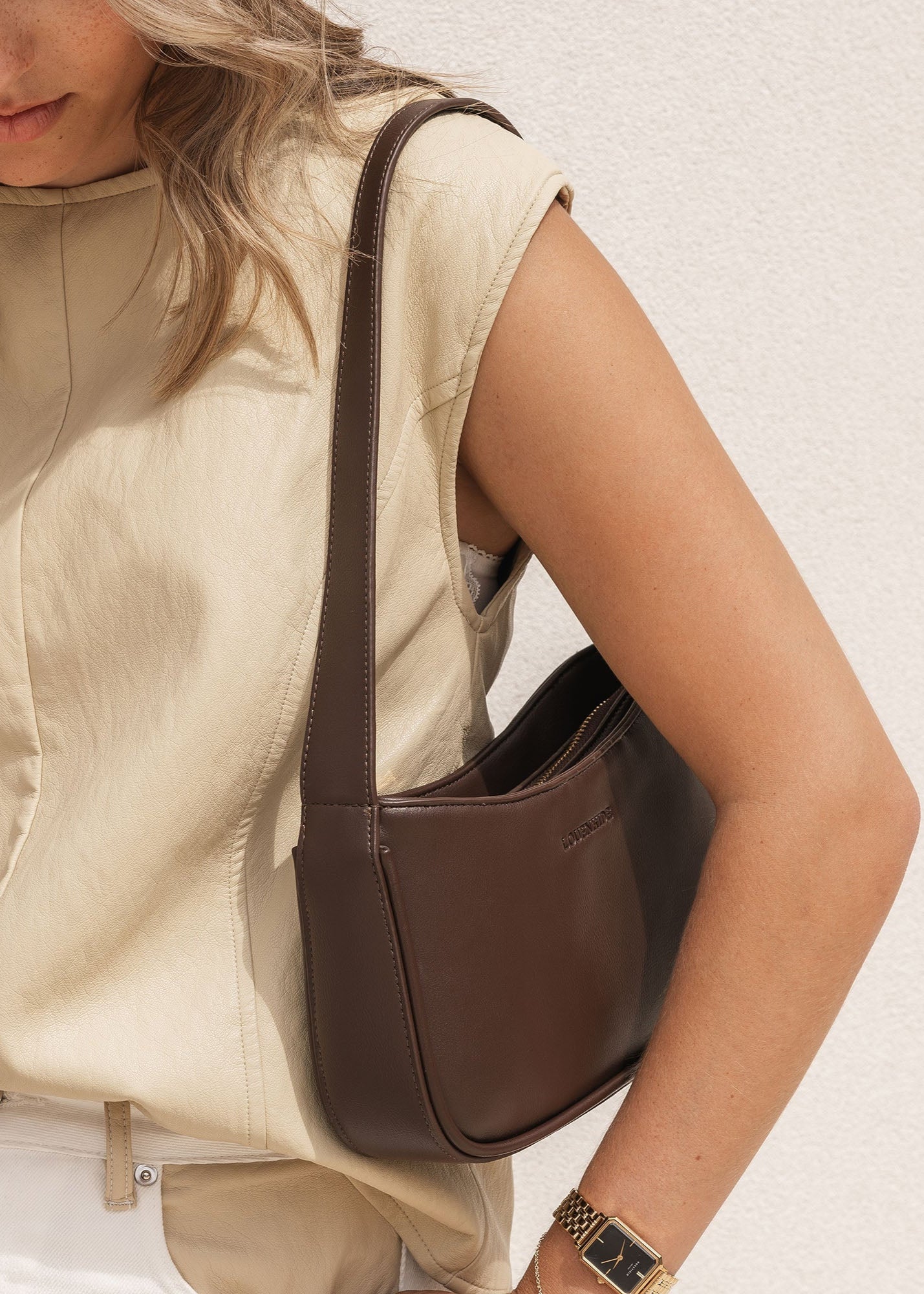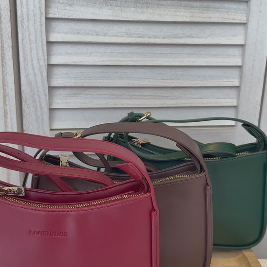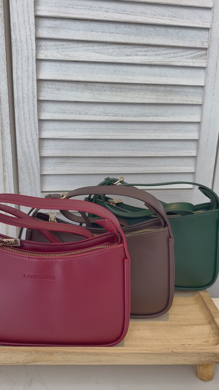 The Louenhide Ivy Shoulder Bag is a timeless piece made to move with you.    Designed to seamlessly transition from an elevated day look to the ideal night out companion, this petite shoulder bag is an essential addition to your capsule wardrobe. Created for the minimalist, this clean, seamless style effortlessly combines refinement with functionality. Secure your day-to-night essentials with the discreet top-zip closure, ensuring your belonging won’t fall out when you’re on-the-go. For seamless transitions you can style it your way with a convertible bag strap extender that allows you to adjust the strap length to your preferred fit. Enhance your style and step out with the Ivy over your shoulder. (Copyright Louenhide 2025)
