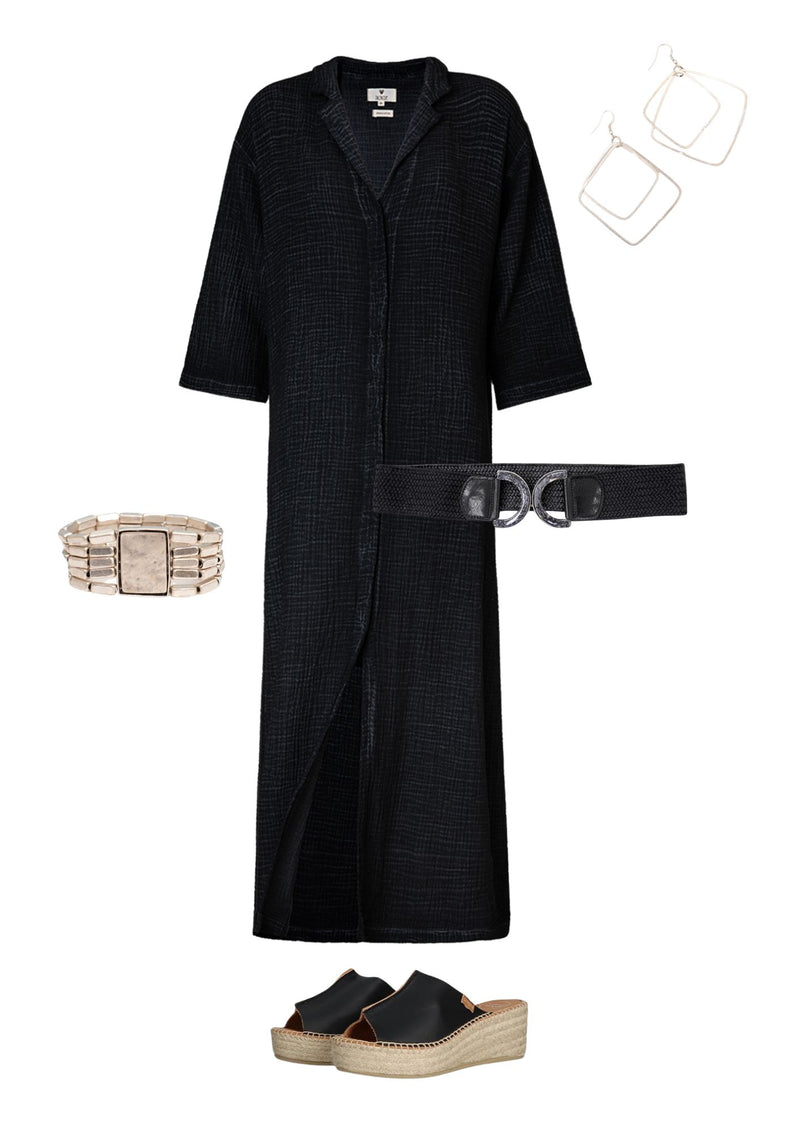 Introducing the Crinkle Shirt Dress a maxi-length, lightweight and free feeling spring and summer dress, for the everyday. made with a luxe fabric composed of doubled Turkish muslin cotton. The crinkle muslin texture is incredibly soft on the skin, and feels lightweight, yet substantial when worn. (Copyright Pokoloko 2025)