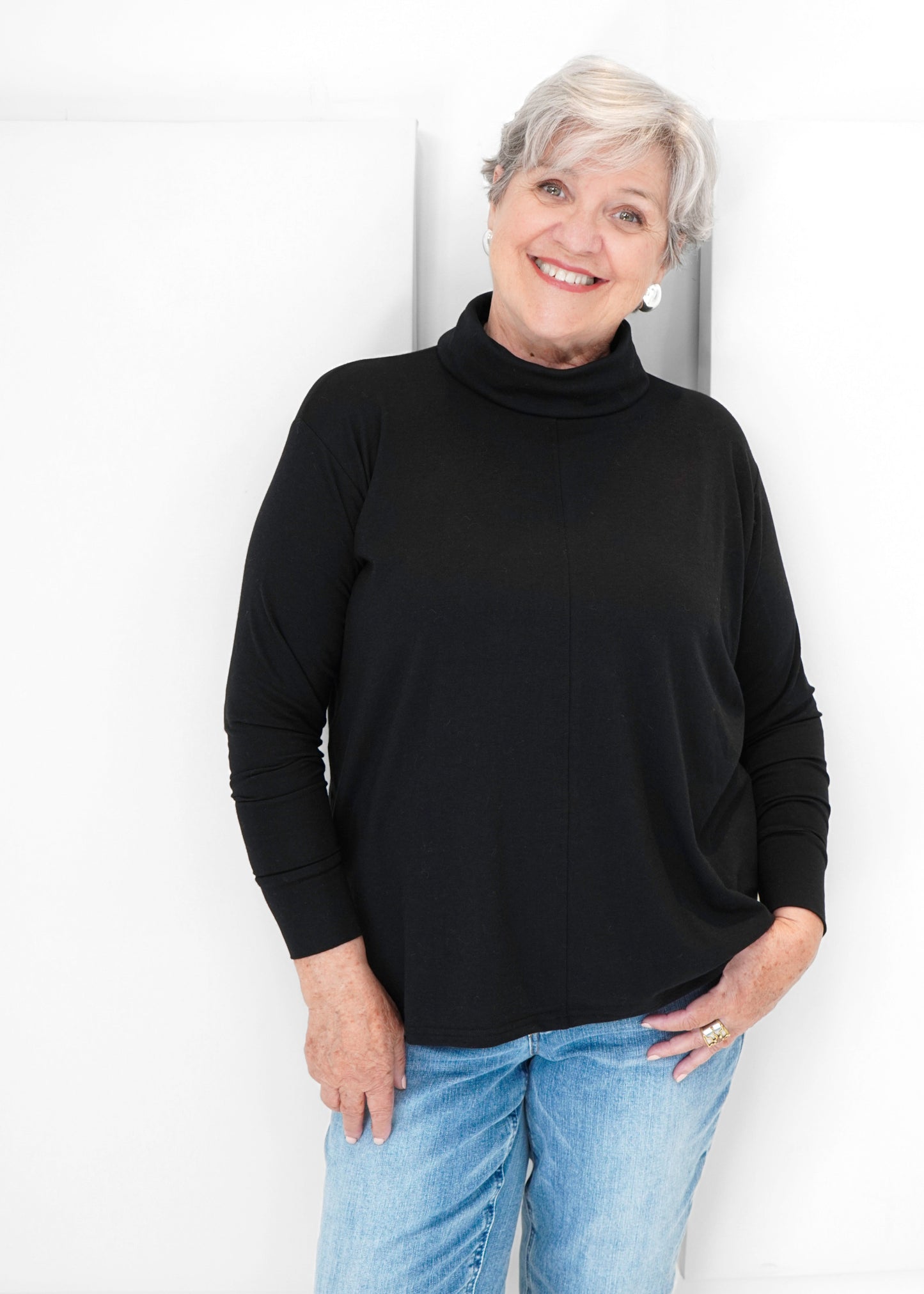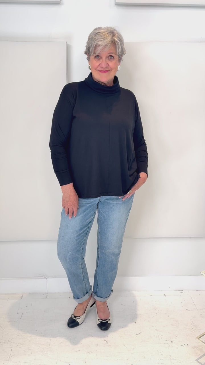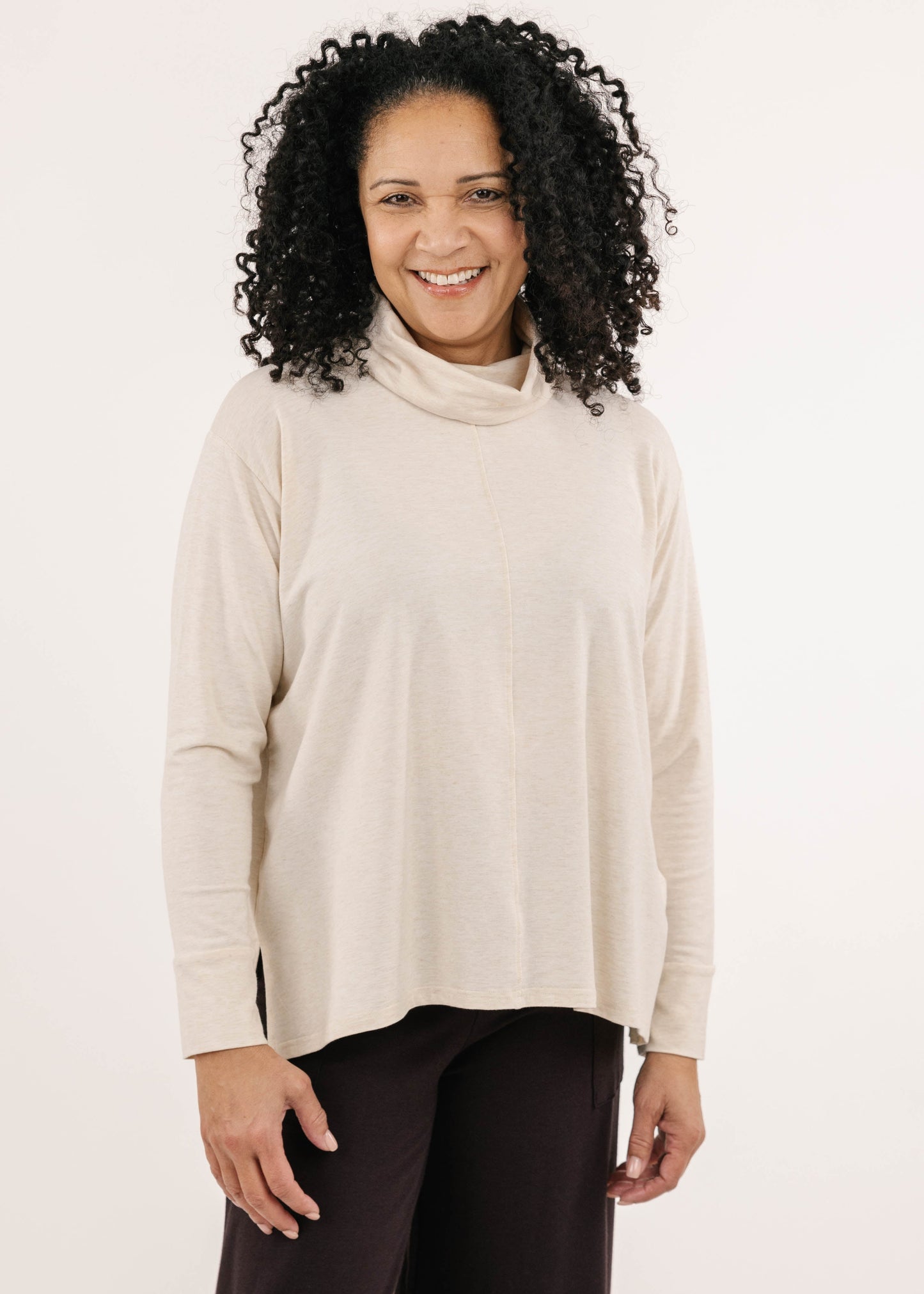 The Shannon Passero Jasper Pullover features a relaxed turtleneck and is crafted from a soft bamboo blend, making it an ultra-comfortable wardrobe essential. Its breathable fabric and cozy fit provide everyday ease and style.