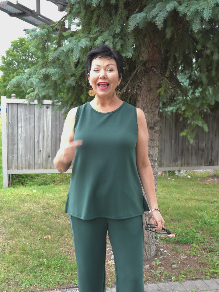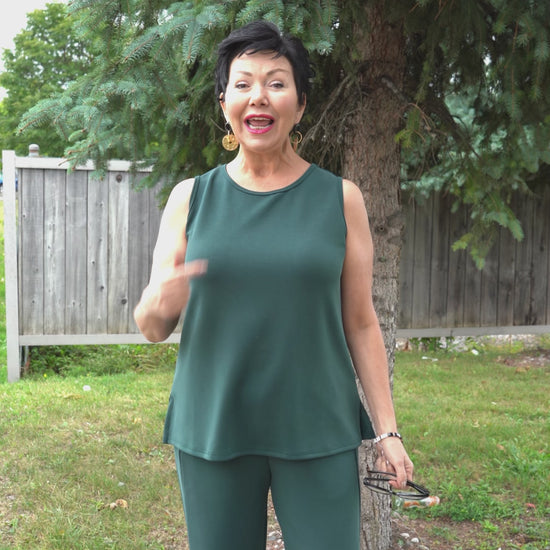 Style tip: Elaine loves to wear this top reversed — one side features a round neckline, and the other a chic bateau neckline. Two looks in one!