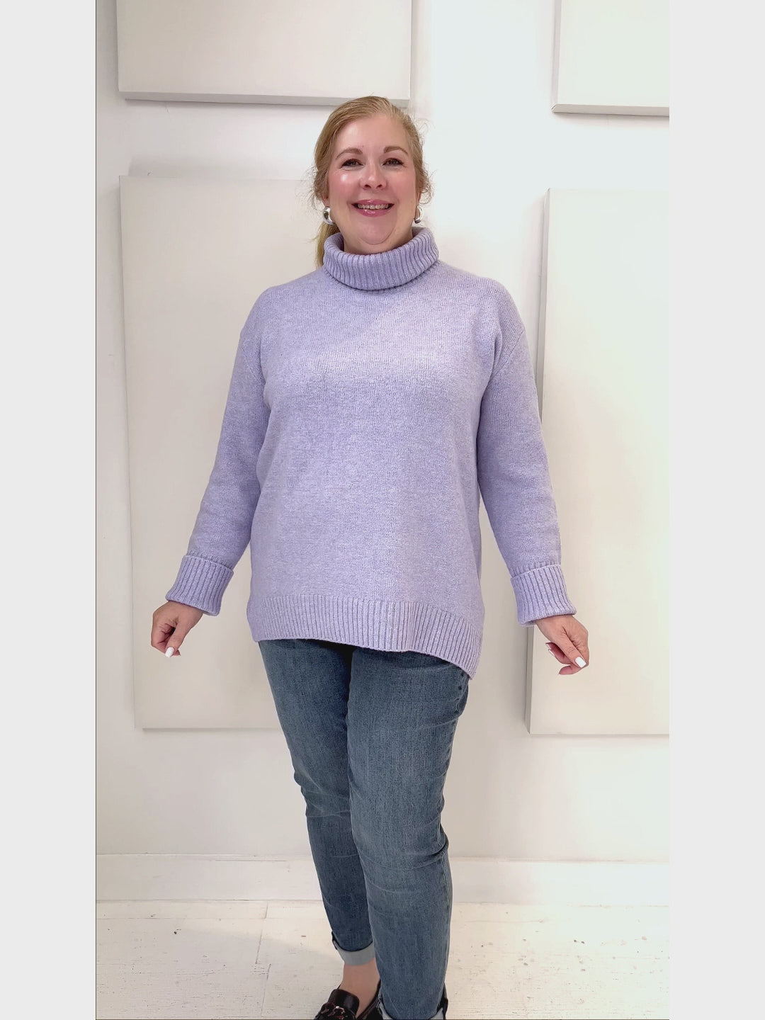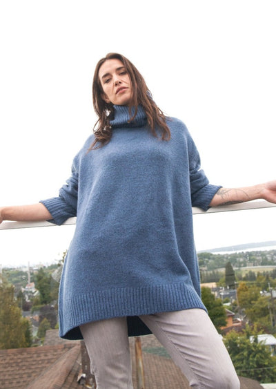 Our Dog Walker Chunky Cowl Sweater is a must have for winter! It feels like wearing a beautiful soft blanket. It has a ribbed wide neck and cuffs that can be folded back or worn straight and scrunched. Slightly longer back length for ergonomic fit. This is a must have for the cooler months. Washes and wears well and despite its size, is a lighter weight sweater that won’t drag you down. Beautiful fashion shades or neutrals to compliment your wardrobe.