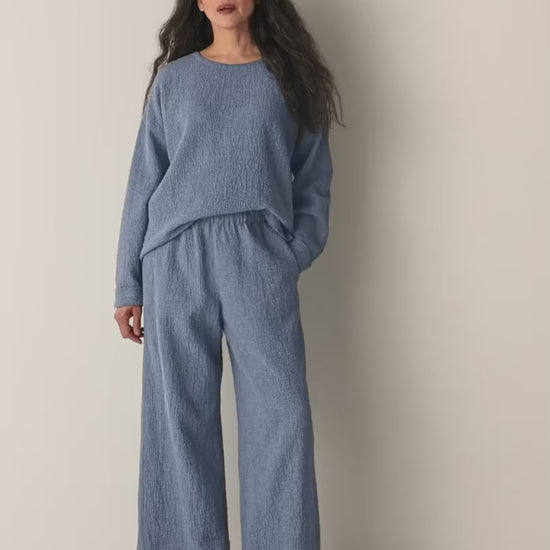 The wide-leg pant. An essential shape, reimagined in our soft crinkled doubleweave. Pair it with one of our matching tops to make it a set. (Copyright Eileen Fisher 2026)