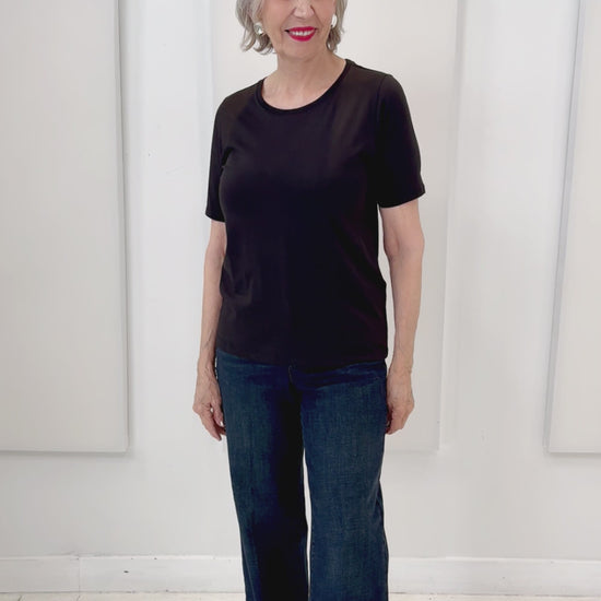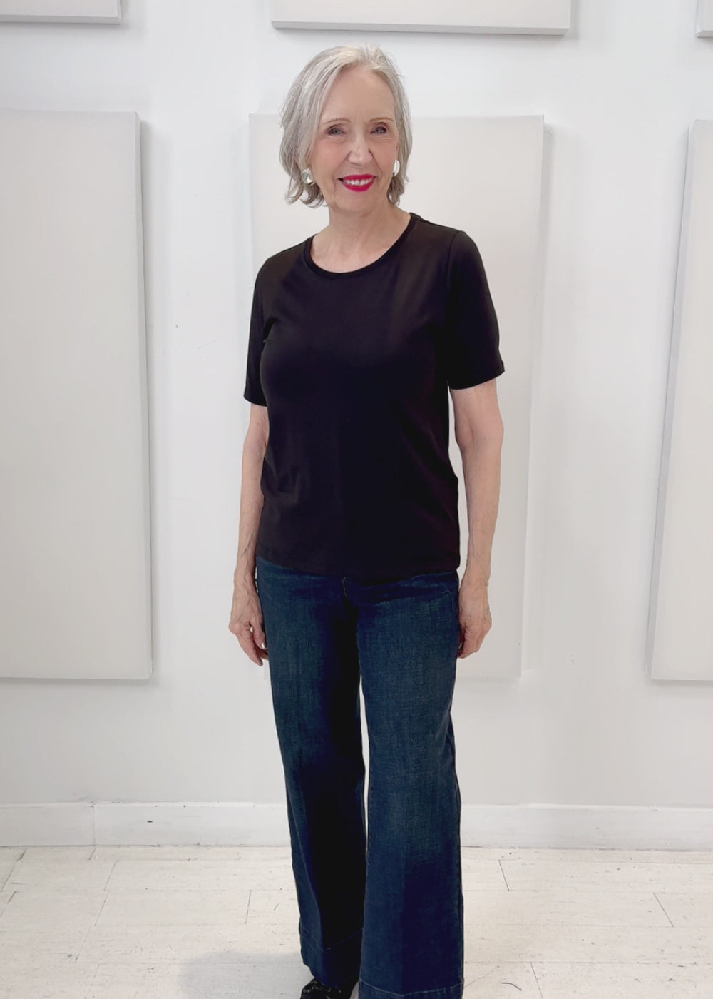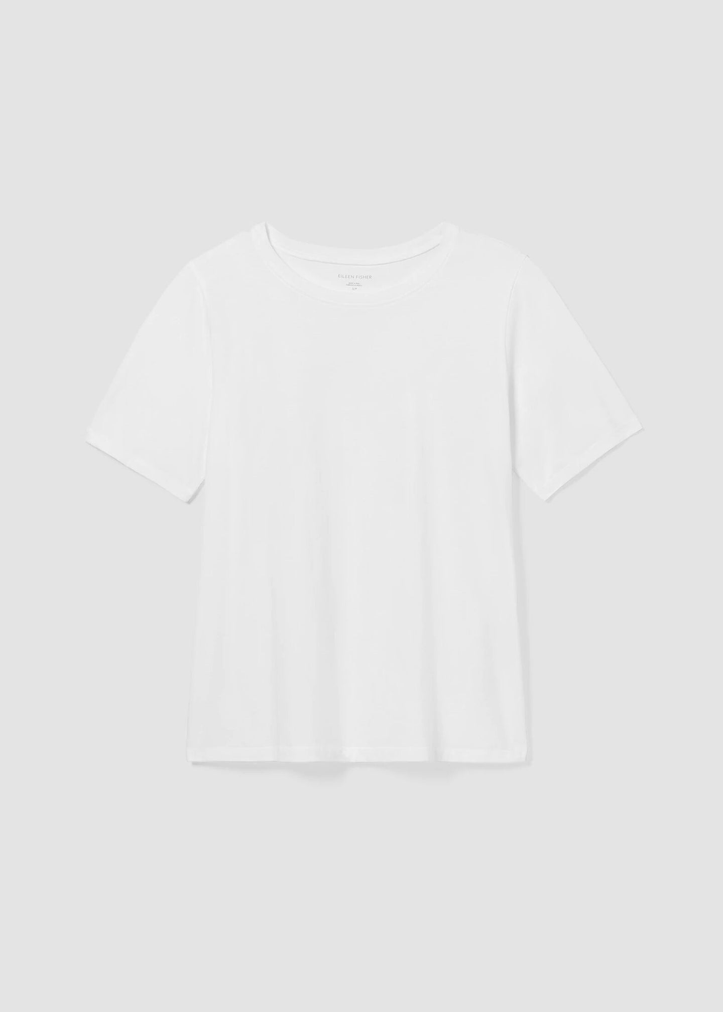 The round neck T-shirt—an elevated essential you'll reach for season after season. In Organic Pima Cotton Jersey that's now grown using regenerative farming methods. (Copyright Eileen Fisher 2025)