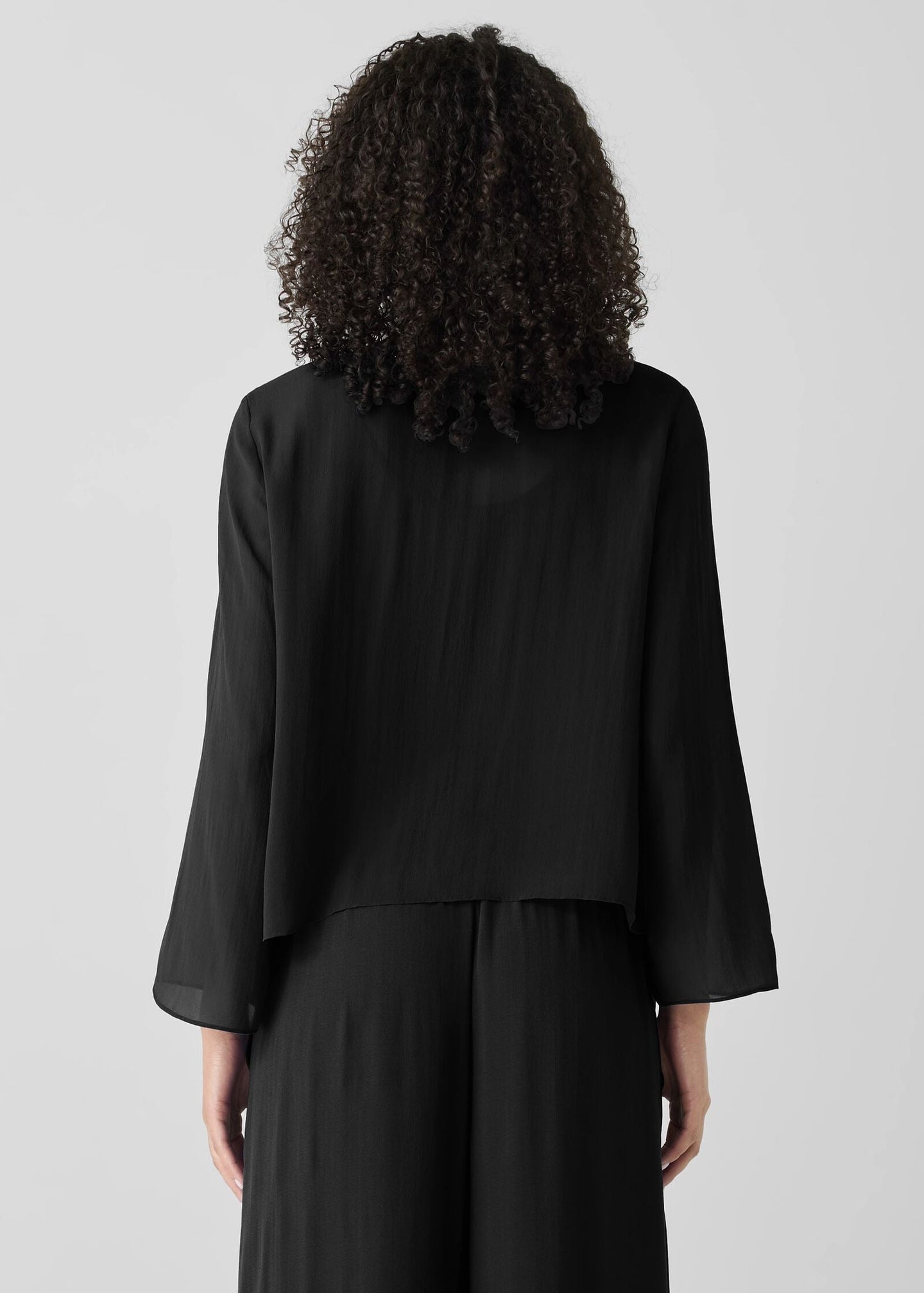 Wrap it, tie it, leave it open—this jacket is designed to be worn your way. With cascading ties and buttons inside each shoulder seam for easy styling. It's the ultimate layering piece, in ethereal Sheer Silk Georgette. (Copyright Eileen Fisher 2025)
