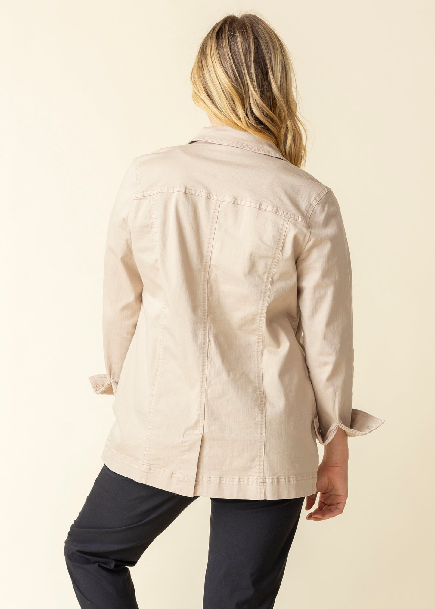 Crafted for both style and comfort, the Habitat Boyfriend Jacket is the ultimate wardrobe essential. Its flattering boyfriend fit pairs effortlessly with a classic button-up front and button cuffs. Thoughtfully designed with convenient patch pockets and a single vent at the back, this jacket is the perfect blend of functionality and fashion. Elevate any outfit with this versatile, timeless staple.