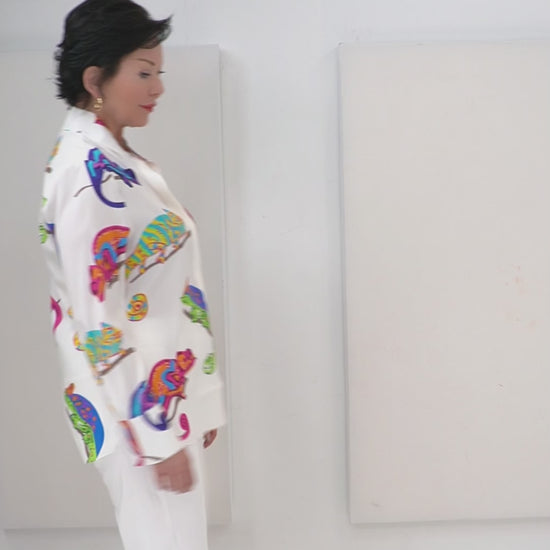 Herzen's – Silk Salamander Print Blouse — Crafted in a sumptuous silk blend, this blouse features refined button cuffs and a clean, elegant silhouette. The striking salamander print offers a bold, contemporary statement, balancing modern edge with sophisticated luxury.