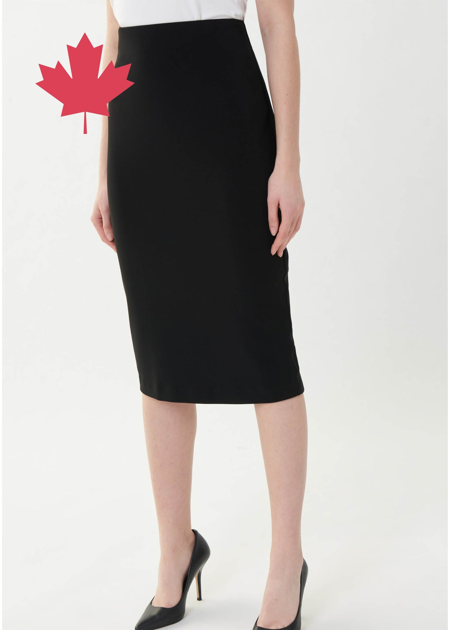 The classic pencil skirt from Joseph Ribkoff with a sexy kick pleat at the back. Pair with a flat boot and a jean jacket for everyday fashion. Equivalent to a basic slim blank pant for those who prefer skirts.