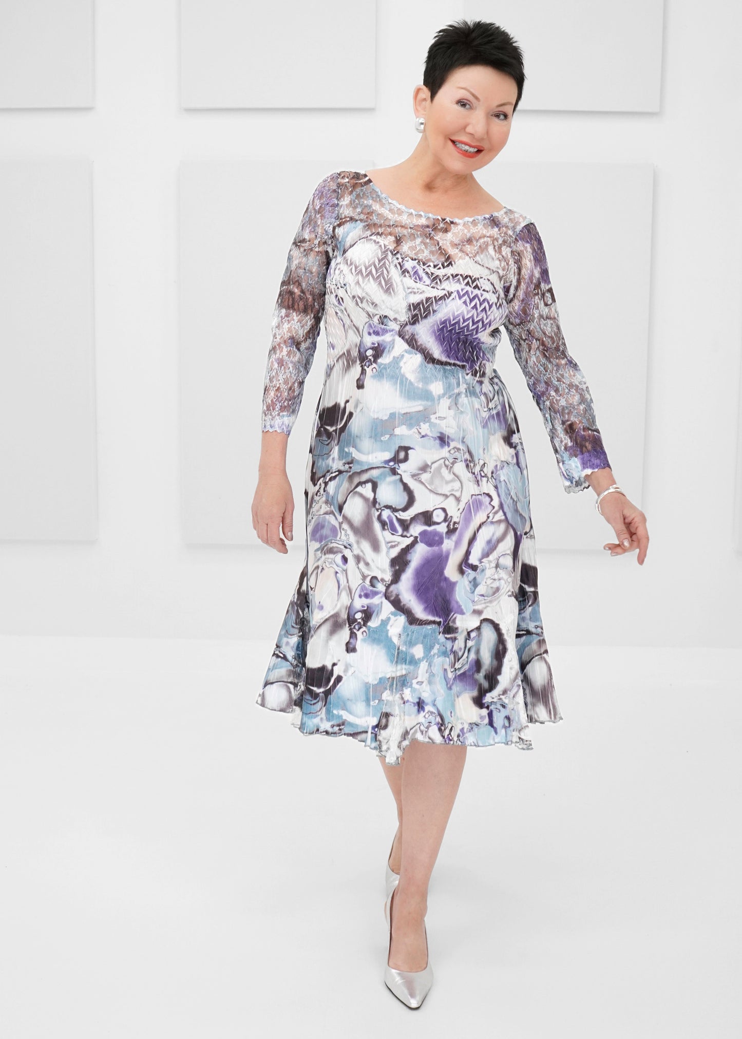 Komarov utilizes the finest natural and man-made fabric blends, most of which are from meticulously selected yarns and created specifically for Komarov before undergoing the line's special pleating process. Each piece is hand printed so no two are exactly the same. Each Komarov piece conforms or expands to fit the body so the fit is uniquely your own. Komarov has made pleating relevant to modern lifestyles with fabrications that provide unbeatable fit. Though strict quality control is imposed for manufacturing consistency, the process itself produces slight variations that make each garment almost one of a kind. (Copyright Komarov 2025)