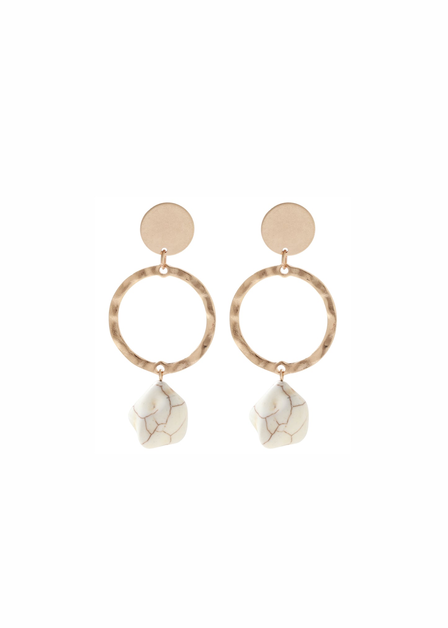 Sleek and elegant, the Merx Hammered Hoop Stone Drop Earrings add a touch of sophistication to any look. With a unique hammered finish and stunning stone drop, these earrings are sure to impress. Perfect for any occasion, these versatile earrings will elevate your style to the next level.