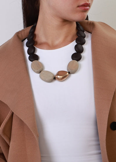 Stay stylish with the Merx Metallic Pebble Necklace! Featuring a chic mix of silver, black, and clear tones, this eye-catching statement piece adds modern flair to any outfit. It's light, comfortable, and the perfect must-have for any fashionista.