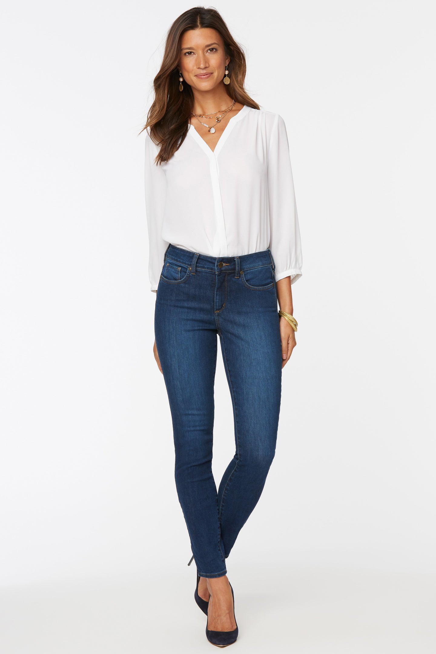 Here’s the skinny—we’ve got the jean you need for a second-skin fit with stretch and comfort that’s second to none. NYDJ’s Ami Skinny Jeans flatter every inch of you, giving you the sculpted legs, tucked tummy and lifted curves you love. Our unique Lift Tuck® Technology flatters in the front, by using a proprietary slimming panel with a patented criss-cross design for a more slender silhouette. Features classic five-pocket styling, zip fly and button closure. (Copyright NYDJ 2024)