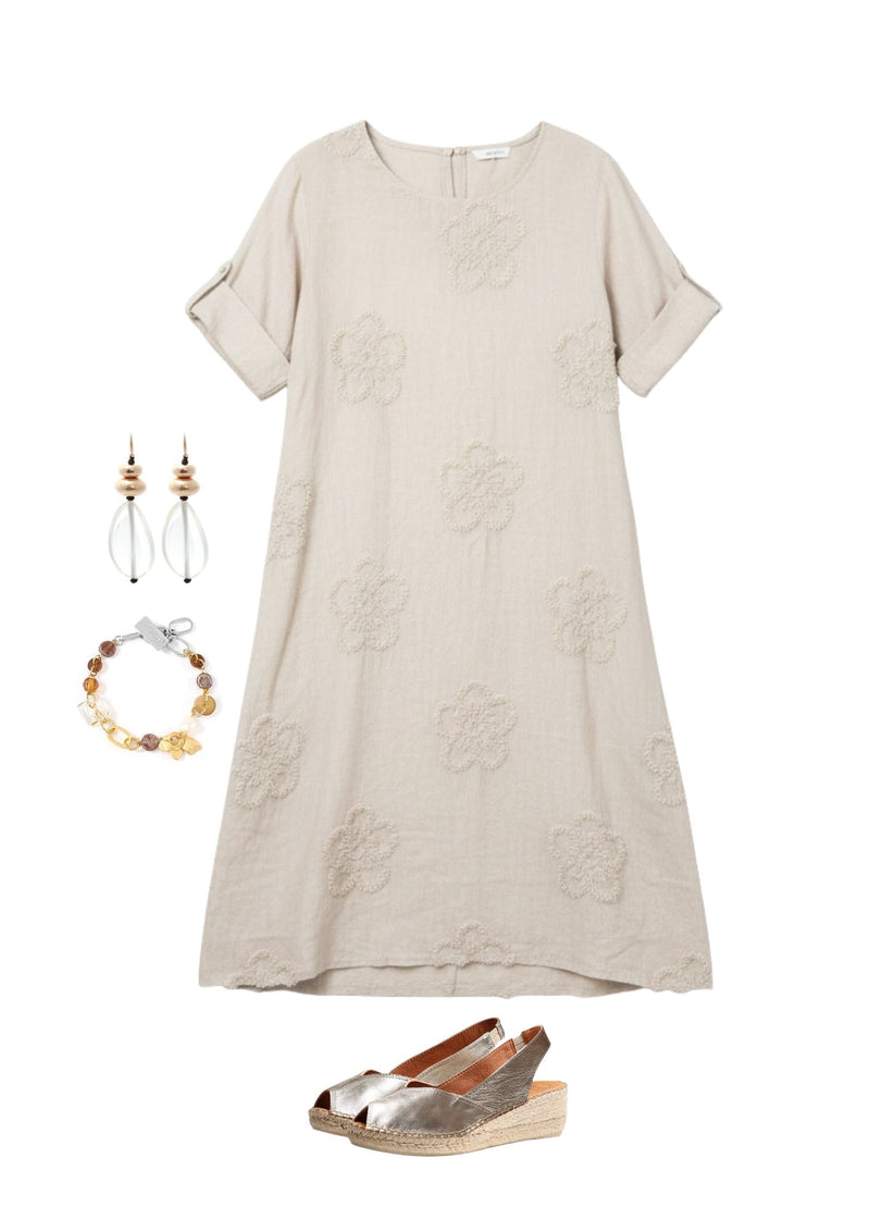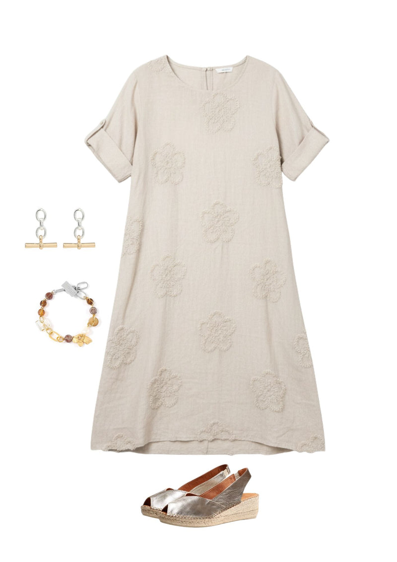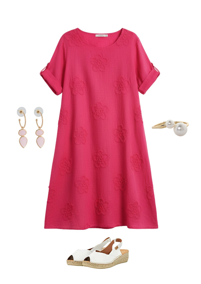 Charming and effortlessly feminine, Lila’s Bloom Stitch Dress features a short-sleeve, round-neck design adorned with delicate floral embroidery. Its soft silhouette and garden-inspired detailing make it perfect for casual outings or dressier occasions, adding a touch of whimsical elegance to any wardrobe. (Copyright Orange 2026)