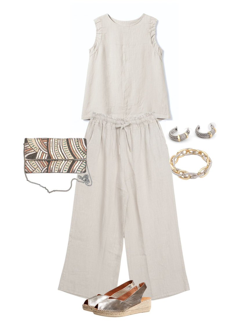 Maeve's Elastic Tank is effortlessly chic and comfortable, featuring a sleeveless design with elasticized arm openings for a soft, gathered effect. Its relaxed silhouette makes it perfect for warm days, layering, or pairing with skirts and shorts for a casual, stylish look.