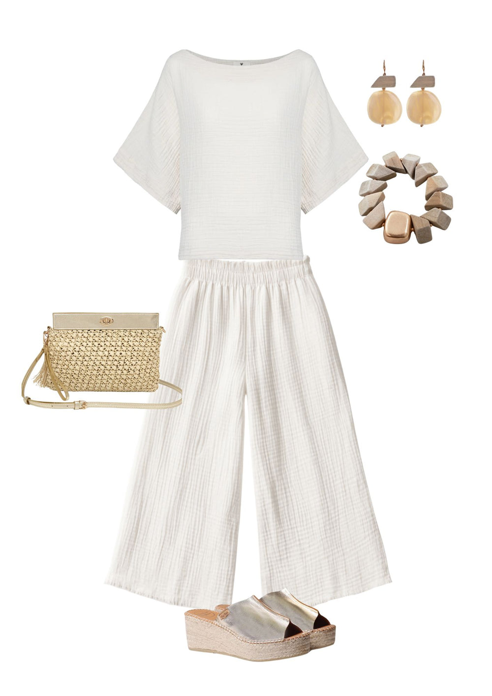 Made with a luxe fabric composed of doubled Turkish muslin cotton. The crinkle muslin texture is incredibly soft on the skin, and feels lightweight, yet substantial when worn. Designed in an oversized style, the Crinkle Crop Top has half sleeves, with a cropped cut at the waist, and a boat neckline. (Copyright Pokoloko 2023)
