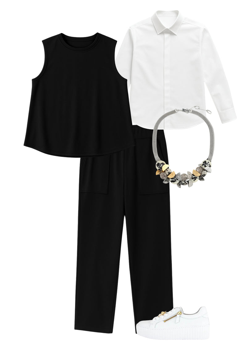 Meet the Sandra Shell in French Terry — where comfort and polish meet in perfect balance. Crafted from a smooth cotton-blend French terry with a refined, distinct feel, this sleeveless, bra-friendly top combines an easy fit with a tailored finish. Beautiful on its own or layered under your favorite jackets and cardigans, it’s effortless style made simple.