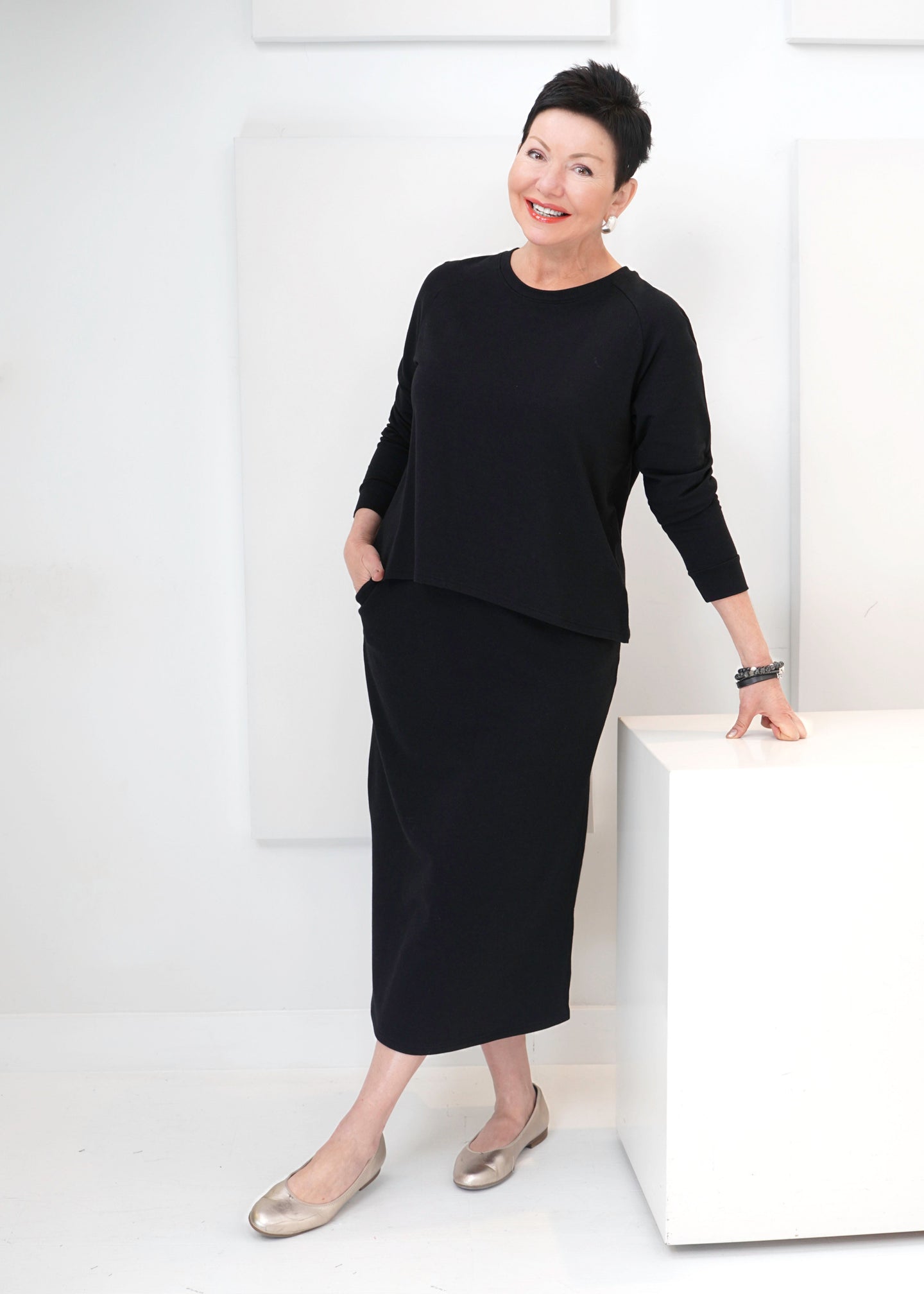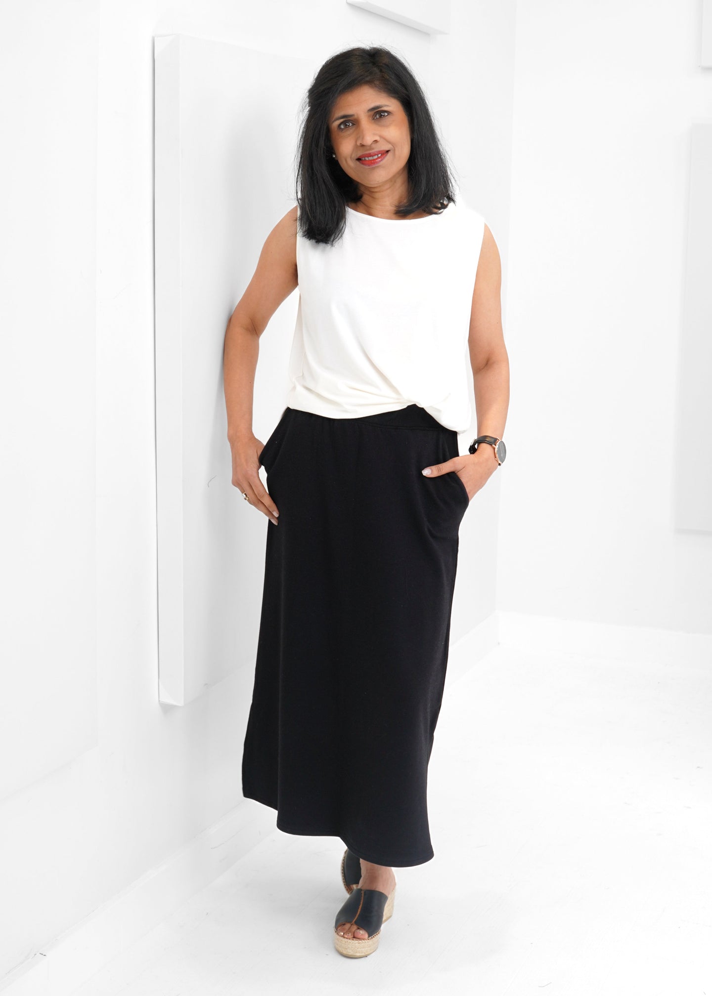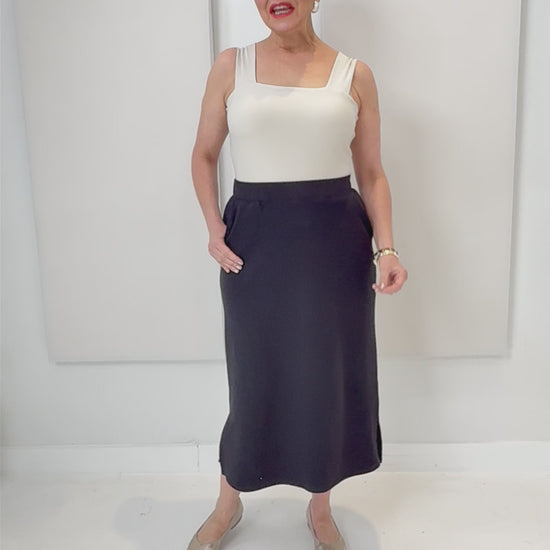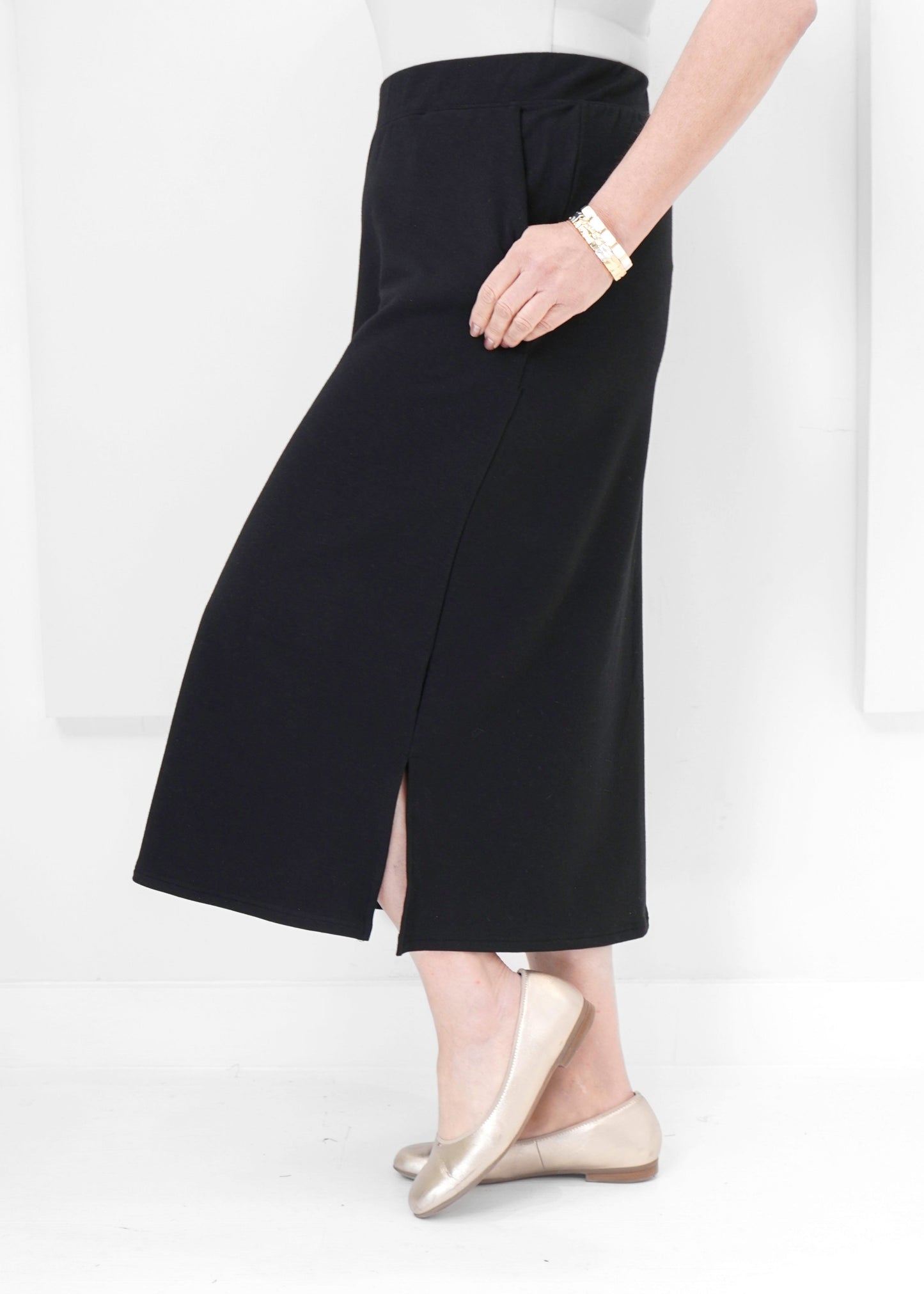 Indulge in unparalleled comfort with our modern French Terry skirt. Designed with an elegant A-Line silhouette and two sleek angled slant pockets, this versatile piece effortlessly transitions from office to home. Crafted from our luxurious French Terry fabric, it provides a relaxed yet polished look that exudes effortless style. A chic alternative to traditional joggers, this skirt enhances your everyday wardrobe with both comfort and sophistication.