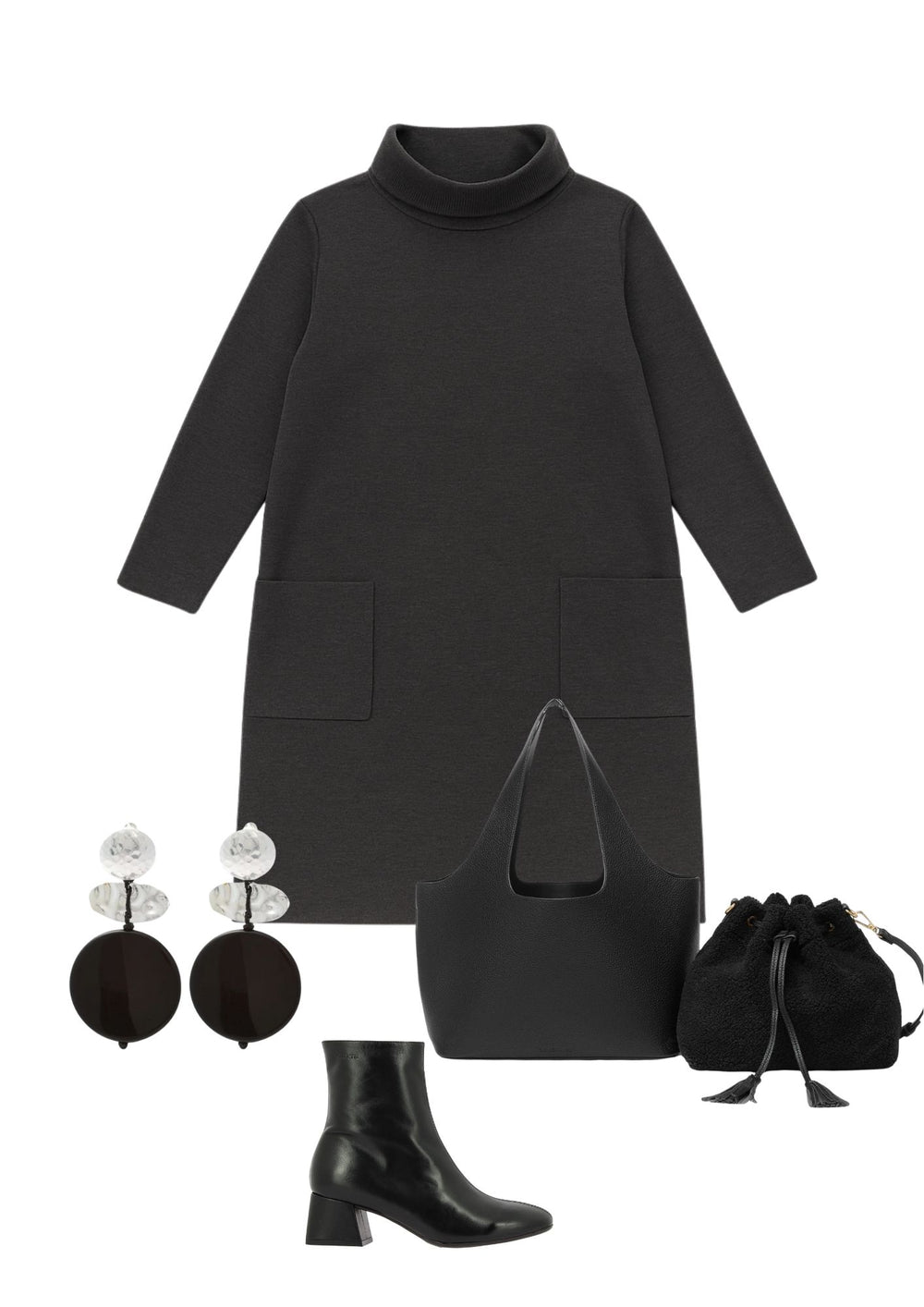 Effortless sophistication for every day. The Ponte Theresa T-Neck Dress features a classic turtleneck neckline, a flattering silhouette, and functional front pockets-all crafted from our smooth, structured ponte fabric. With its versatile knee-length design, this piece transitions seamlessly from office hours to after-hours, offering timeless style with all-day comfort.