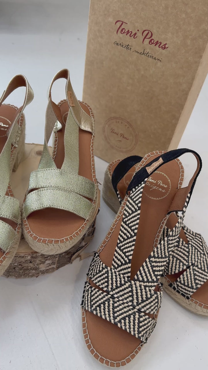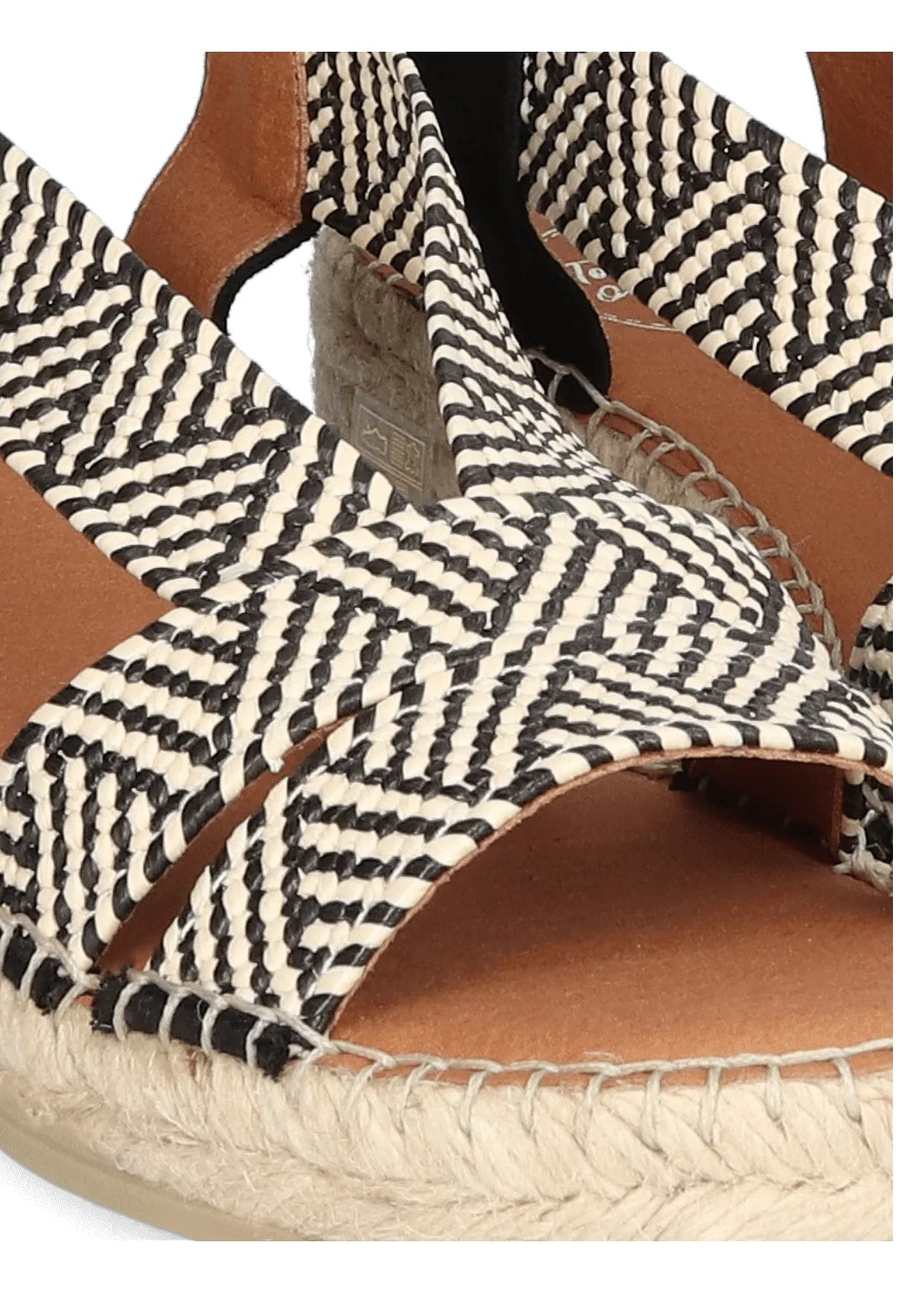 This women's espadrille is made with two-tone elastic. It features a wide jute heel of 5.5 cm, two of which belong to the platform. It is an open design with elastics to ensure a perfect fit to the foot. It has a padded insole for greater comfort and the base of the sole is made of non-slip rubber. It is hand-stitched in Spain.